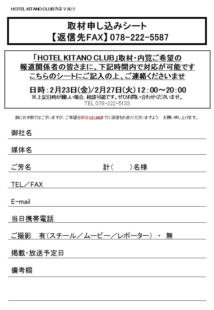 「HOTEL KITANO CLUB」取材・内覧ご希望の