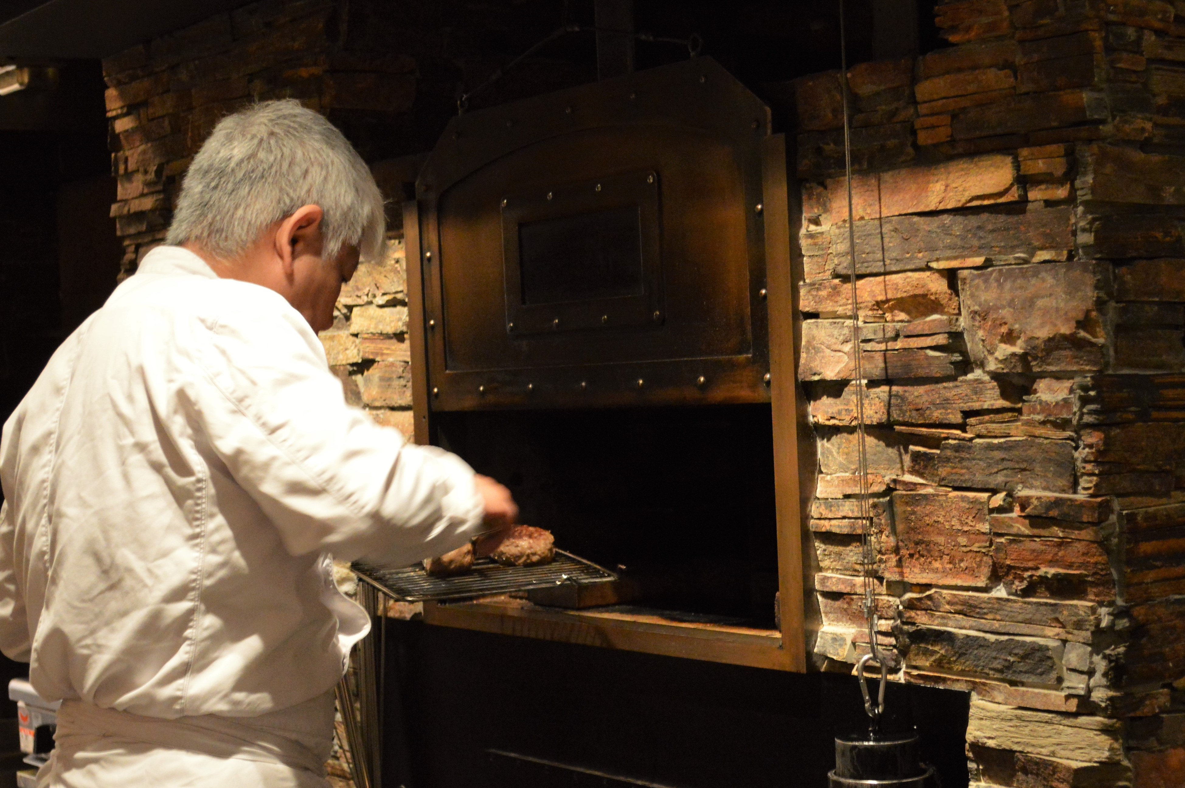 店内中心にある窯は、お肉を焼くために綿密な対流を計算し、土から拘って作り上げたもので、窯内では、力強い火力と長時間火を灯し続ける備長炭で、最大800度まで上がり、他では味わえないお肉をお楽しみいただけます。お肉は、純血但馬牛を素とした神戸牛を中心にブランド牛を扱い、陶芸家の釋永岳さんが焼いたステーキ皿でお召し上がりいただけます。カトラリーは、越前刃物の職人が作ったものを使用し、お客様に最高な時間をお過ごしいただけるよう、日々尽力しています。