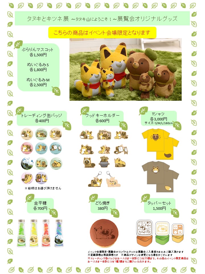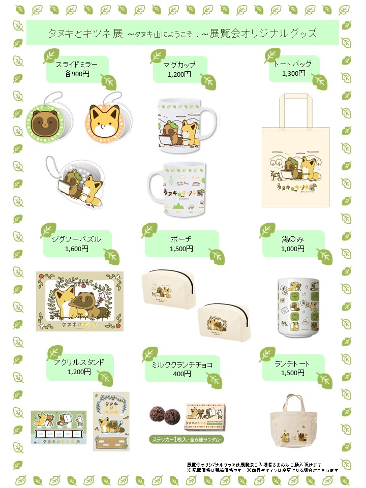 ■タヌキとキツネ展 〜タヌキ山にようこそ!〜展覧会オリジナルグッズ