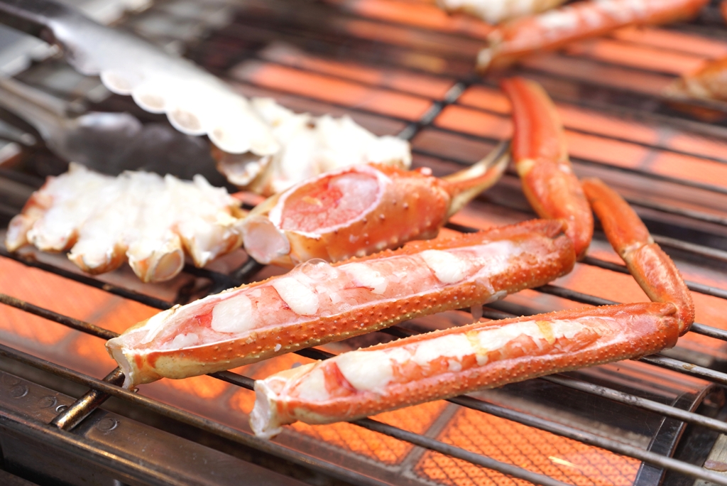 かに食べ放題90分5,980円(税別)。料金には「揚げたて天ぷら」をはじめとした豊富な一品料理の数々を含みます。さらに980円プラスで、なんと生ズワイガニの刺身も食べ放題ですが、オープン記念として5月13日までは通常価格5,980円(税別)で生ズワイガニの刺身も提供いたします。「茹で」「焼き」「刺し」「鍋」で泡吹くまでご堪能ください。