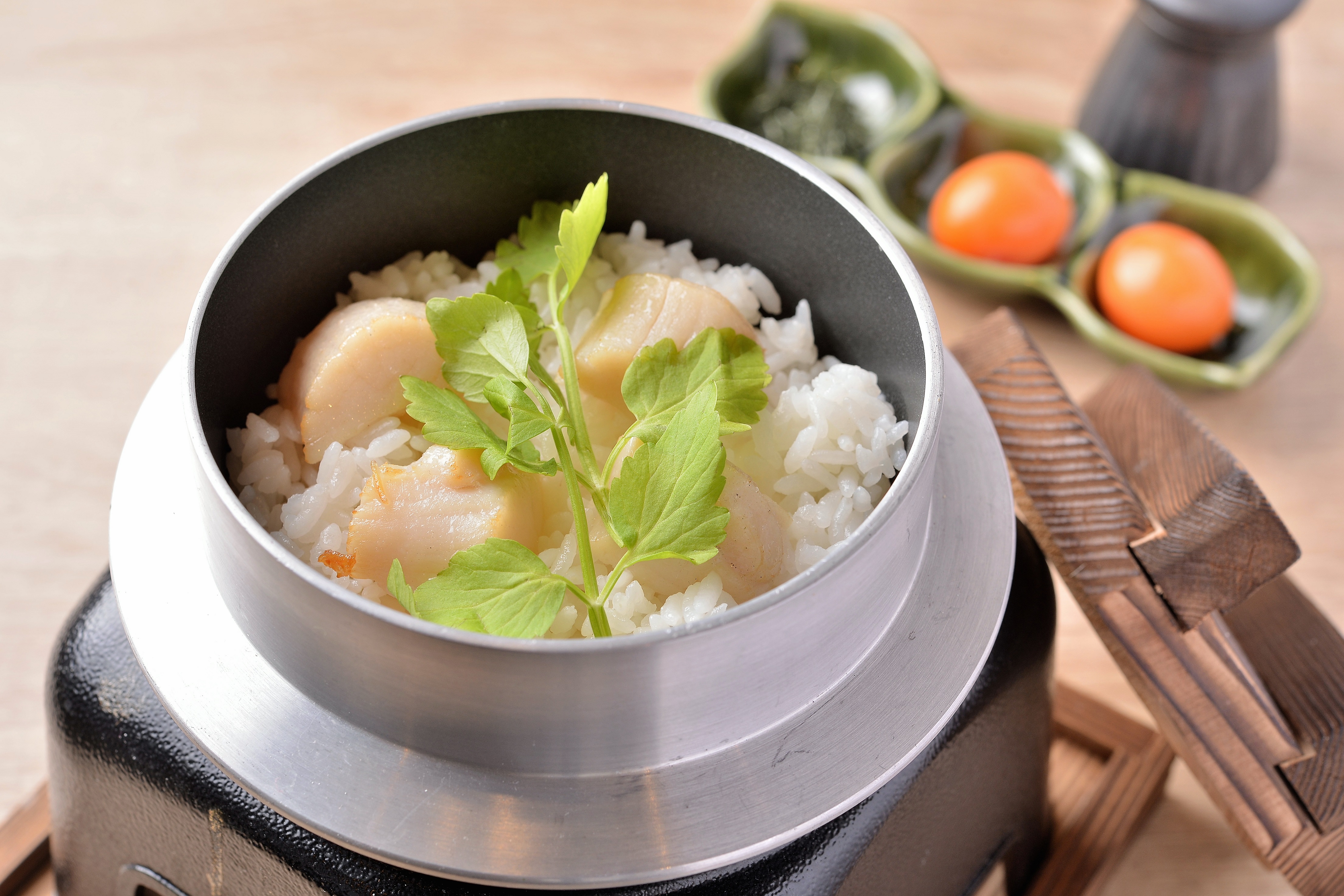 〆には、ホタテとこぶ出汁で釜焚きしたご飯に、玉ひものちょうちん(キンカン)の部分だけを乗せた「ズルすぎる玉子かけご飯」(数量限定)や、トリュフ・フォアグラ・キャビアを一堂に楽しめる「世界三大珍味の寿司」など、思わず注文したくなるようなメニューをご用意しております。