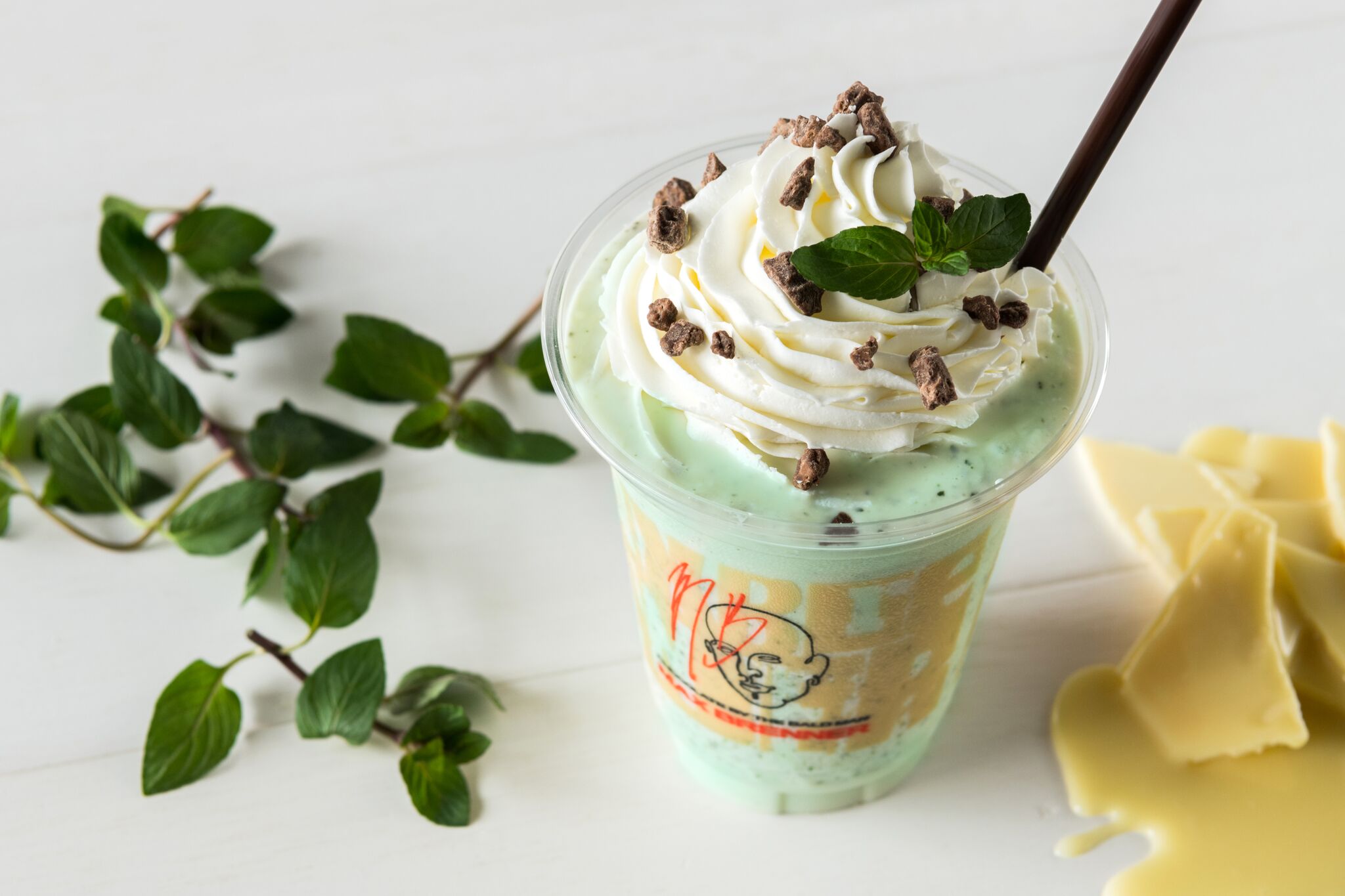 フレッシュなミントの葉とホワイトチョコレートをブレンドし、ホイップクリームをトッピングした、爽やかな甘さのフローズンドリンク。仕上げのミルクチョコレートチャンクの食感もアクセントになっています。