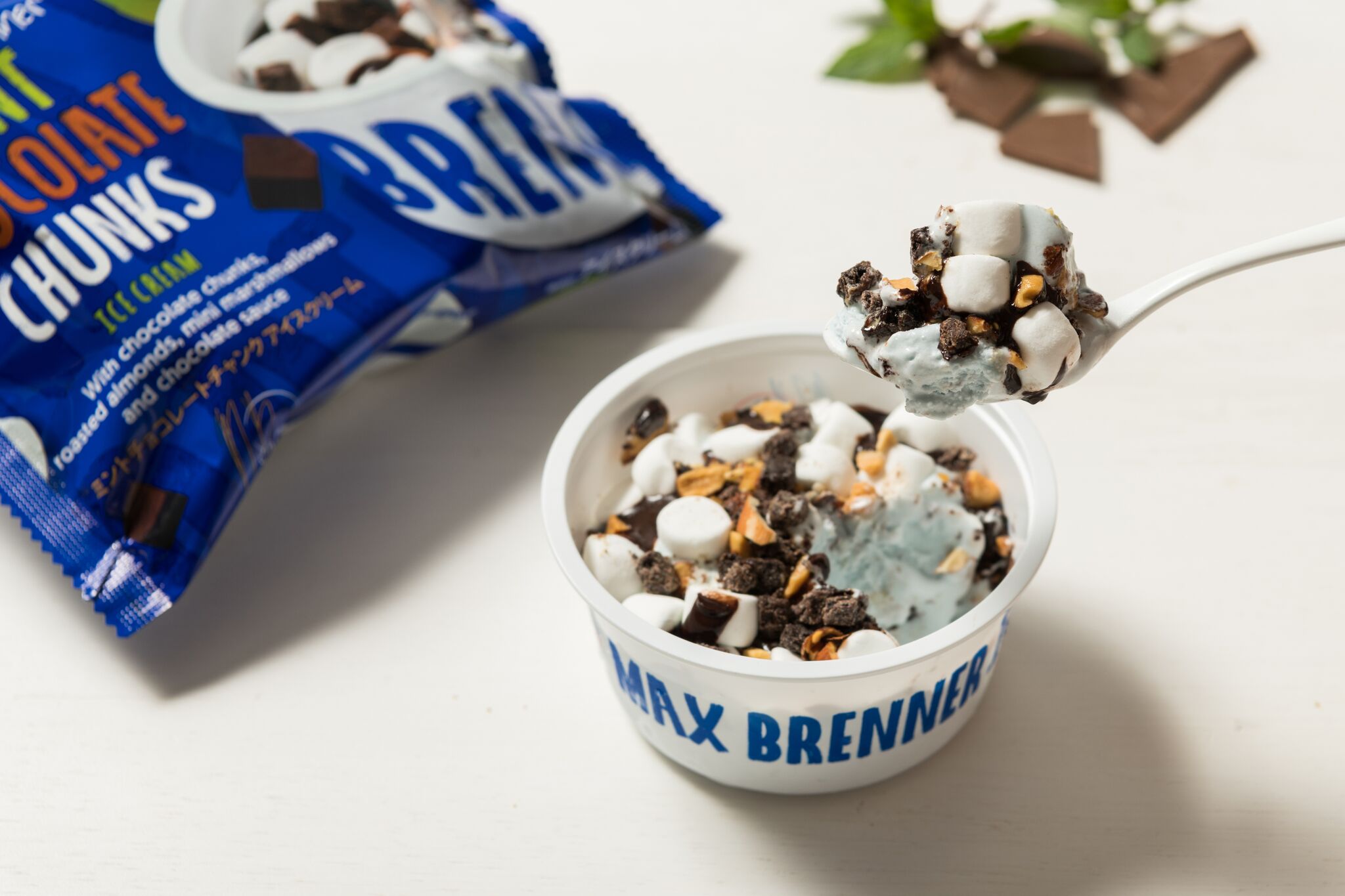 「マックス ブレナー ミントチョコレートチャンクアイスクリーム」は、昨年人気を集めた夏限定「チョコミントアイスピザ」をカップアイスで表現しました。