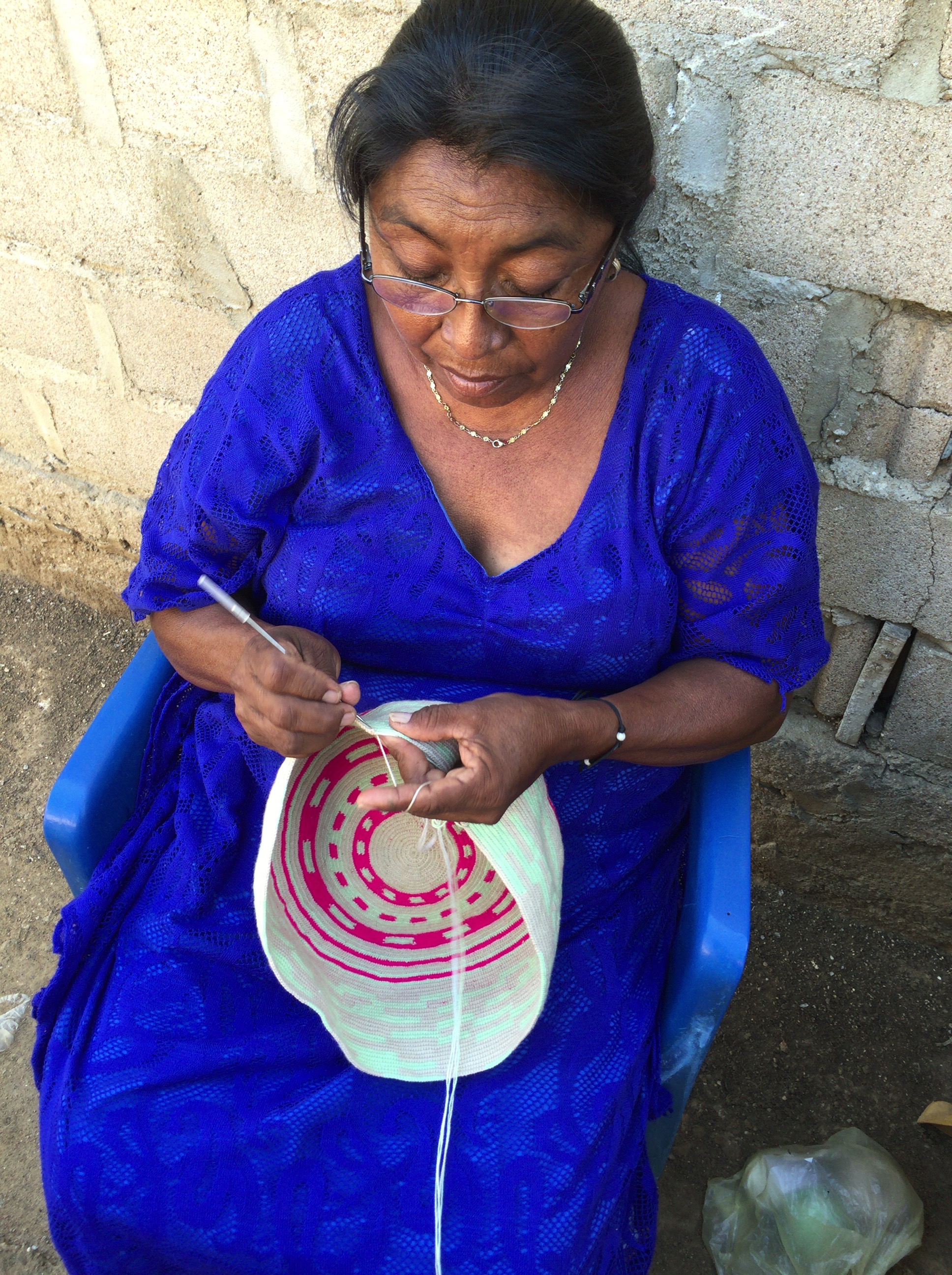 しかしながら、現地コロンビアのリオアチャでは中間業者によってわずかな値段で民族の方々から買い取られたバッグが