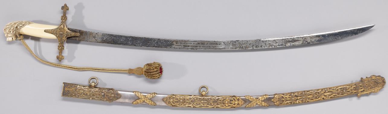 ③象二郎が英国女王から贈られた宝剣の復元展示。