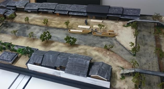 ②周辺街並みの復元ジオラマ。
