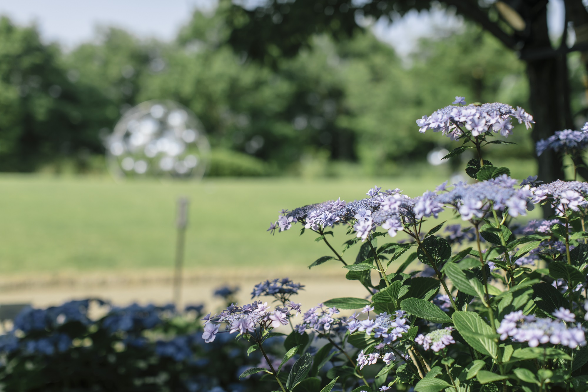 概要:装飾花が周りを縁取るガクアジサイやヤマアジサイ、手毬状に咲くホンアジサイ(西洋あじさい)、様々な形や色のあじさいが咲き誇ります。珍しい品種も数多く、「君の名は」「おはよう」「ありがとう」「舞洲ブルー」なども楽しめます。