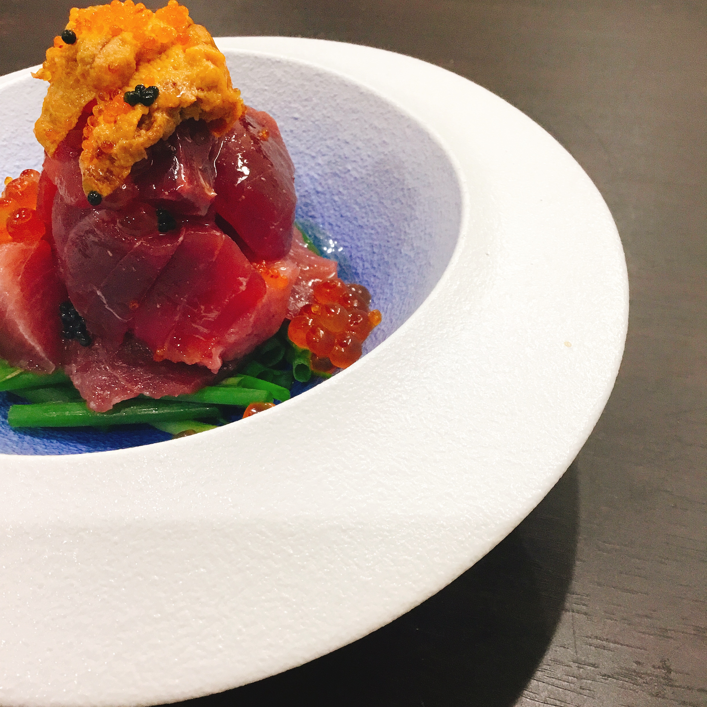 マグロ ・ウニ・イクラをふんだんに盛り込んだ当店の看板メニュー。そのまま食べたり、醤油でアレンジしたり。 各々がシャリ飯で手巻き寿司風に楽しんだりできます。