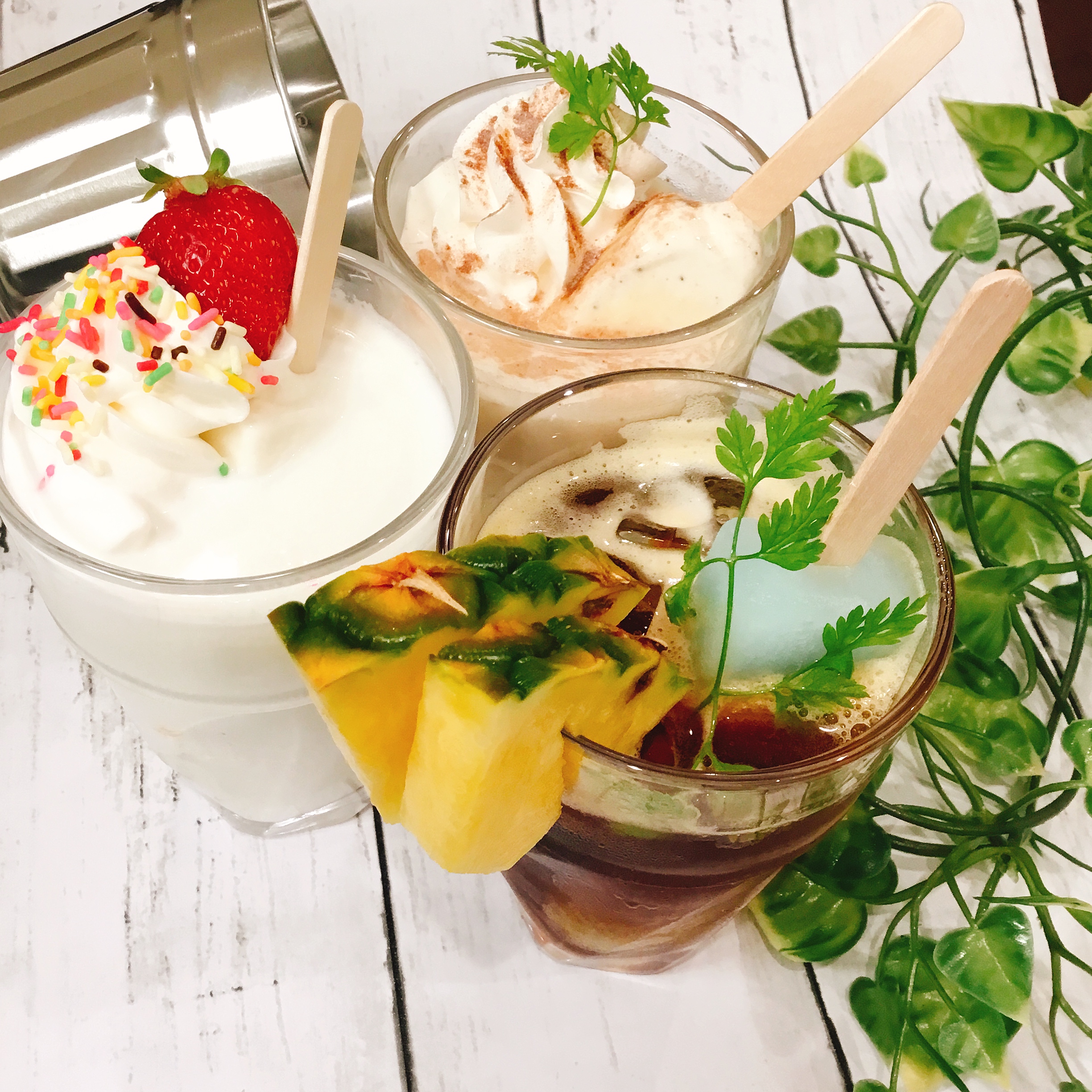 アイスキャンディーそのまま。見た目に可愛く、デザート感覚 で飲んで頂けるライトカクテル。 種類を複数種類用意予定。