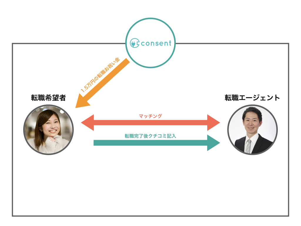 当社のサービス「consent」( https://consent.work/ )は、「転職希望者」と「転職支援者(転職エージェント)」をつなぐ転職支援業界初となる「マッチングサイト」です。転職希望者が転職エージェントを評価できる格付けサービスの一面も持ち合わせており、クチコミを集めることにより転職支援の結果が可視化され、転職エージェントの雑な転職支援を抑止する効果が期待できます。