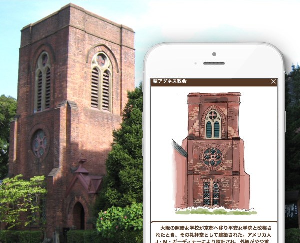また、マップ上では、周辺の歴史的建造物もイラストや解説付きで紹介。楽しく学びながら散策できる仕掛けとしました。参加するほとんどの店舗では、洛景工房株式会社と、美術織物(表装裂)の老舗「鳥居株式会社」とがコラボレーションした「オリジナル文様」でデザインされた小物を販売します。(これらの小物は、ラリー達成者にはプレゼント)