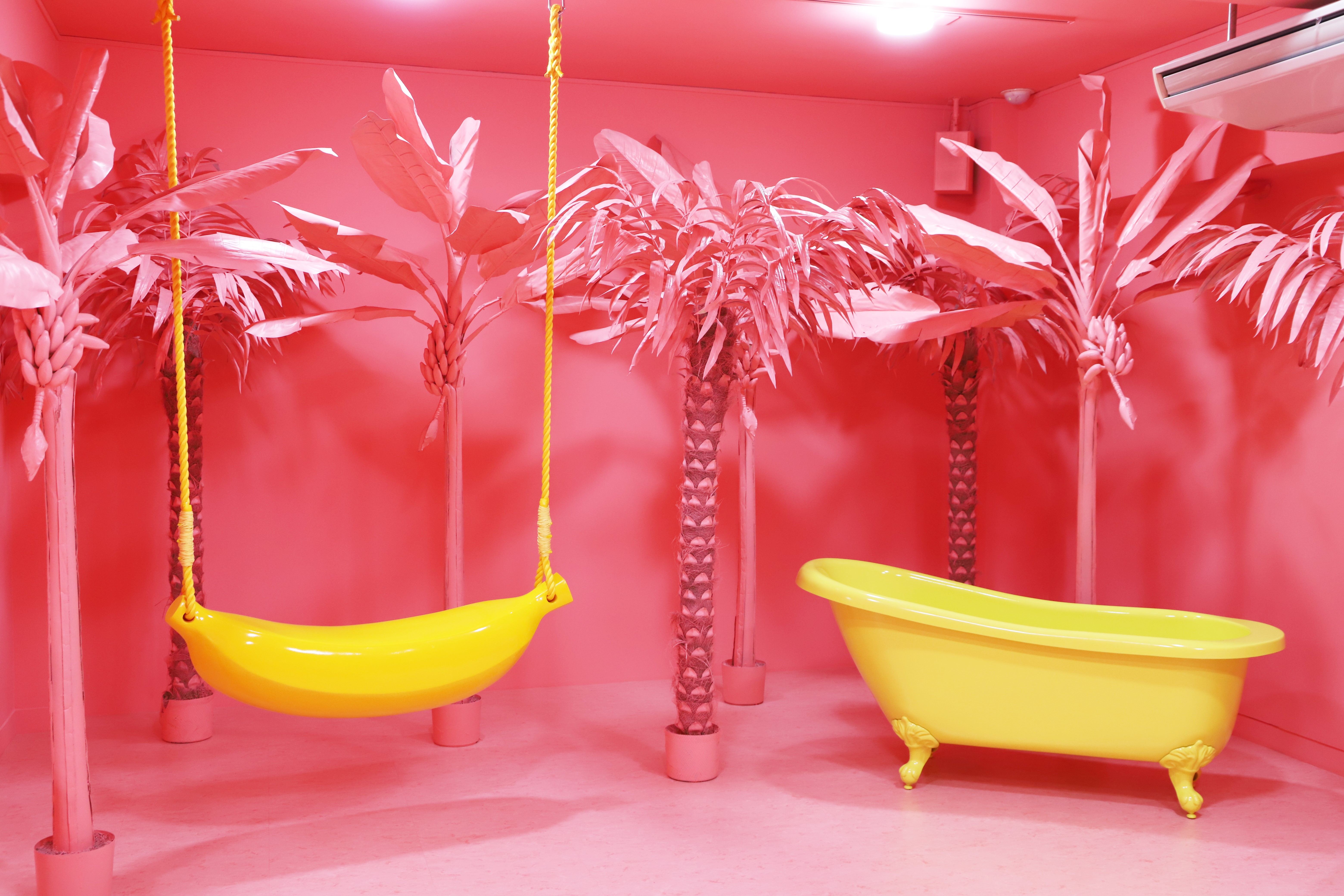(バナナルーム、ミラールーム、ピンクの電話機、ペイントウォール、プール、