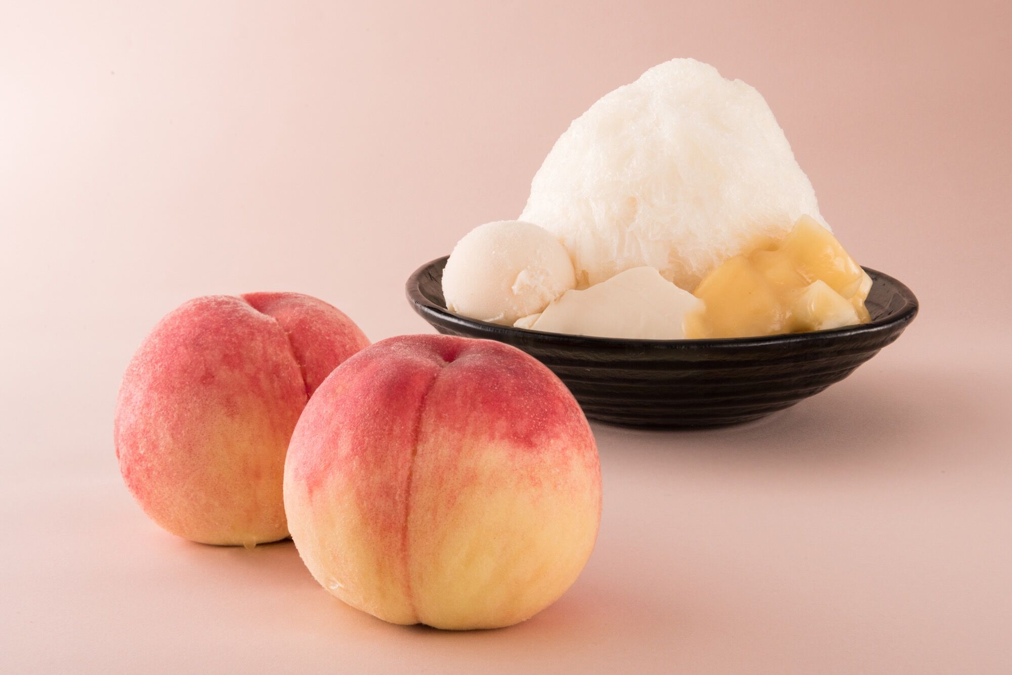 「ピーチかき氷」は、さわやかなピーチのふわふわかき氷にピーチシャーベットとパンナコッタ、ピーチの果実をピーチソースにからめてトッピング。ピーチのやさしい甘さと香りが口の中にひろがります。