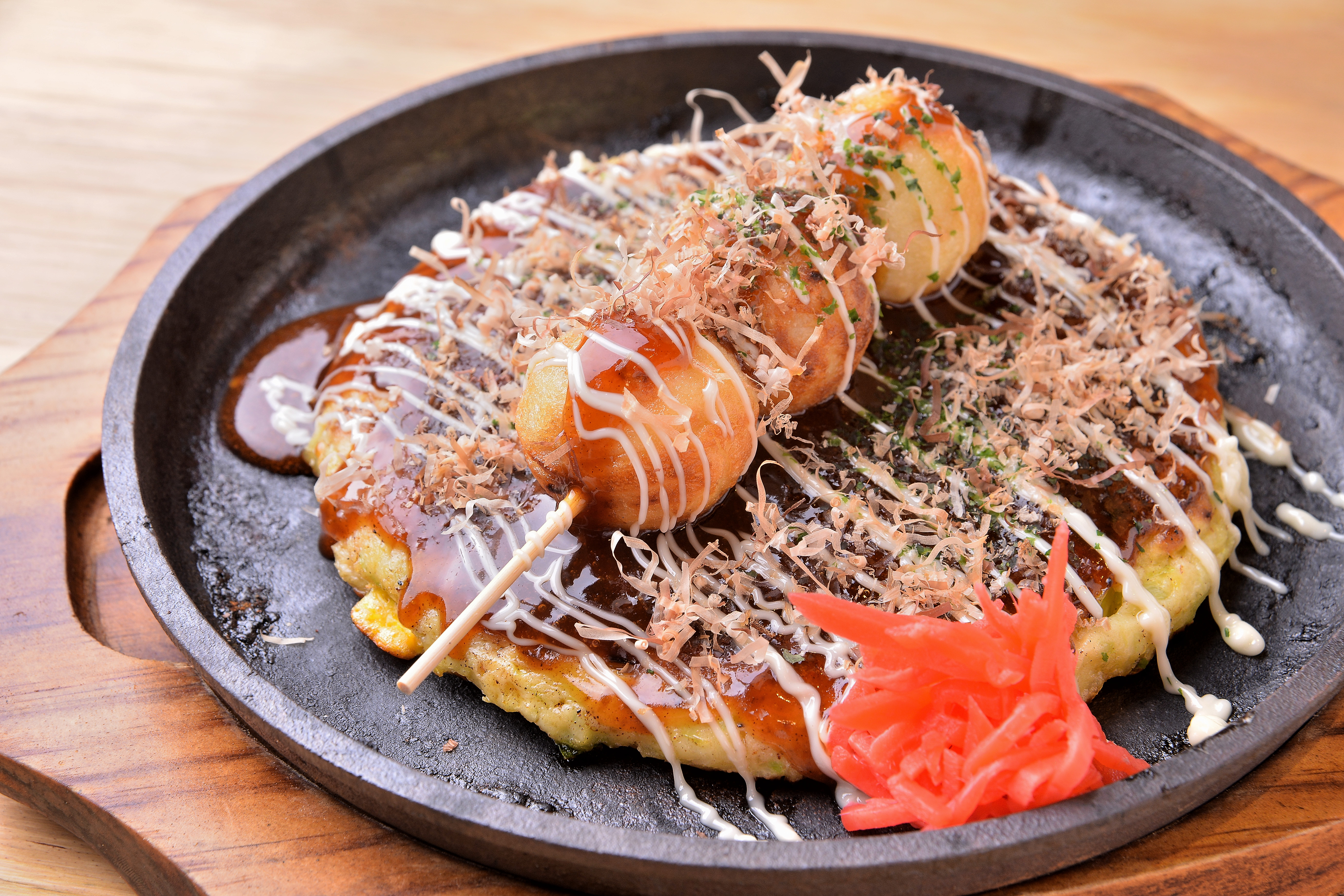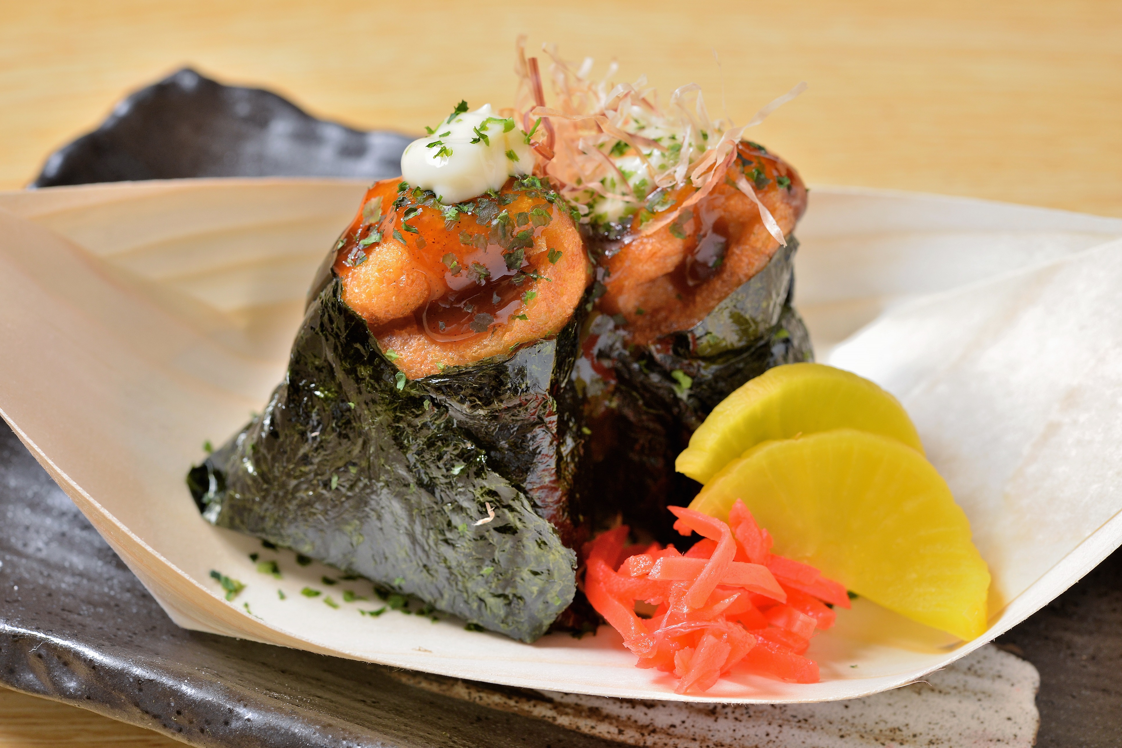 メガ盛り料理以外にも、観光客のお客様に楽しんで頂けるように、大阪が誇るコナモン文化の2大巨頭である、たこ焼きとお好み焼きが同時に楽しめる「たこのみ焼き」や、たこ焼きとおむすびを組み合わせた「たこむす」など大阪を感じる横綱オリジナルメニューもご用意いたします。