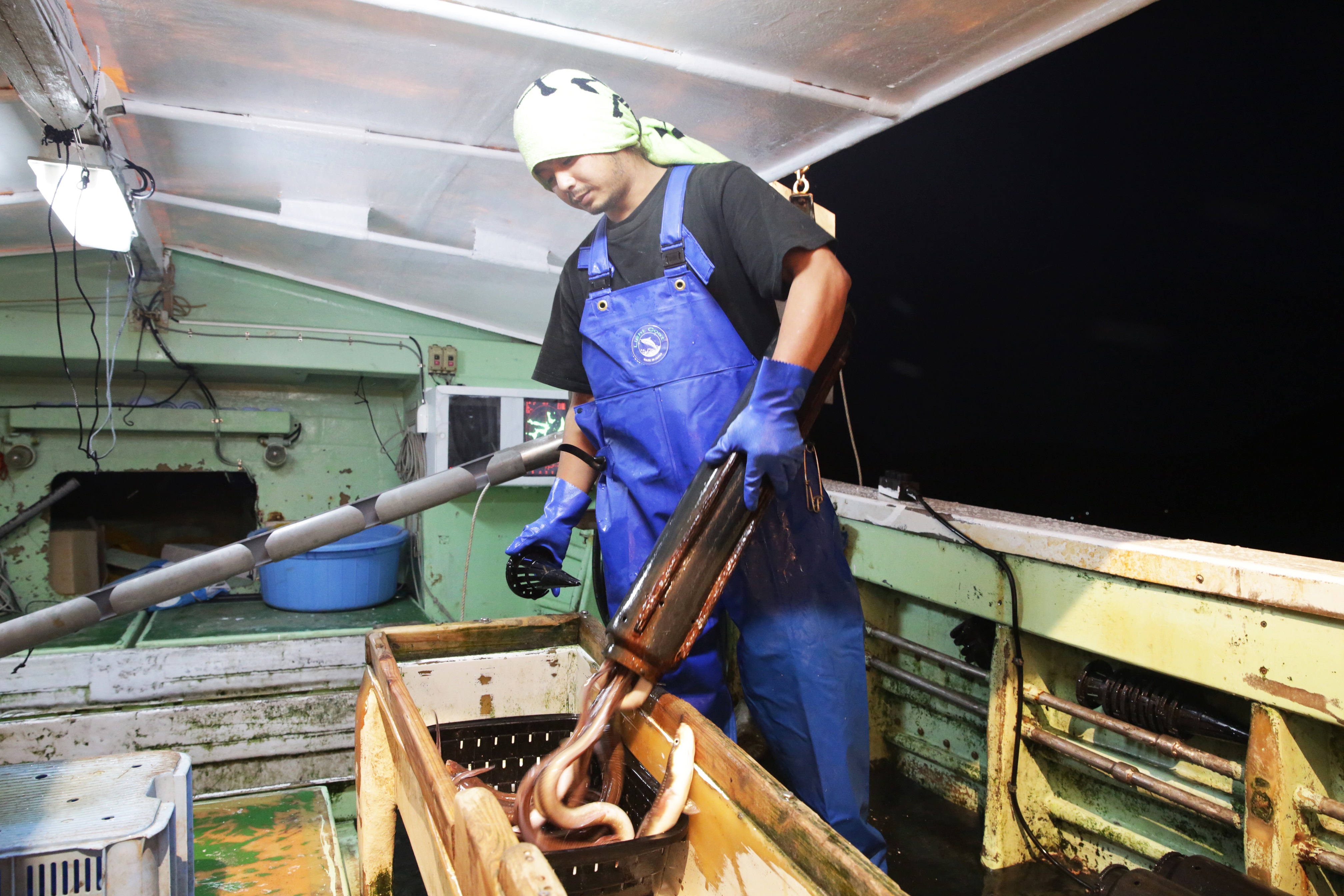 長崎県の対馬に本社を置く、穴子専門の水産会社「対馬水産」代表今田義幸は対馬伝統のかご漁で、生け捕りした穴子を漁師から直接、全てのサイズを港で買いつけ一旦活魚水槽に入れて2、3日泥と餌を吐かせてから、伝助サイズ(大きなサイズ)のみを選別し活けジメにして店舗に直送しています。