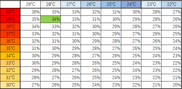 外気温39℃ エアコン設定温度28℃ 5時間利用の場合