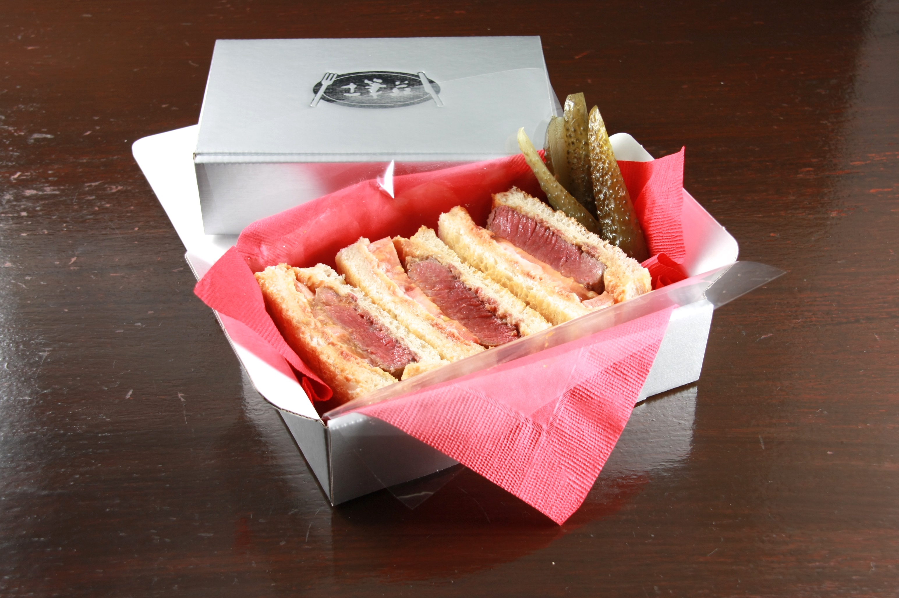 中にステーキとトマトを挟み、マヨネーズ、マスタード、自家製ケチャップで味付けしています。豪州産牛ヒレ肉を使い、赤身がおいしかった当時の国産牛ヒレ肉を再現しました。パンは厚みにこだわり、フランス人パン職人に無理をいって試作を重ねました。味つけでは「当時のトマトの味は濃かった」と推理し、自家製ケチャップで味を補充しています。肉の調理には「真空調理法」を採用し、簡単に噛み切れる軟らかさを実現しました。お客さまには「復刻版の方が数段柔らかい」「懐かしい。ソースはまさにこの味」とお墨付きをいただいています。美化されていく「味の記憶」に負けない料理として復刻できたと自負しております。
