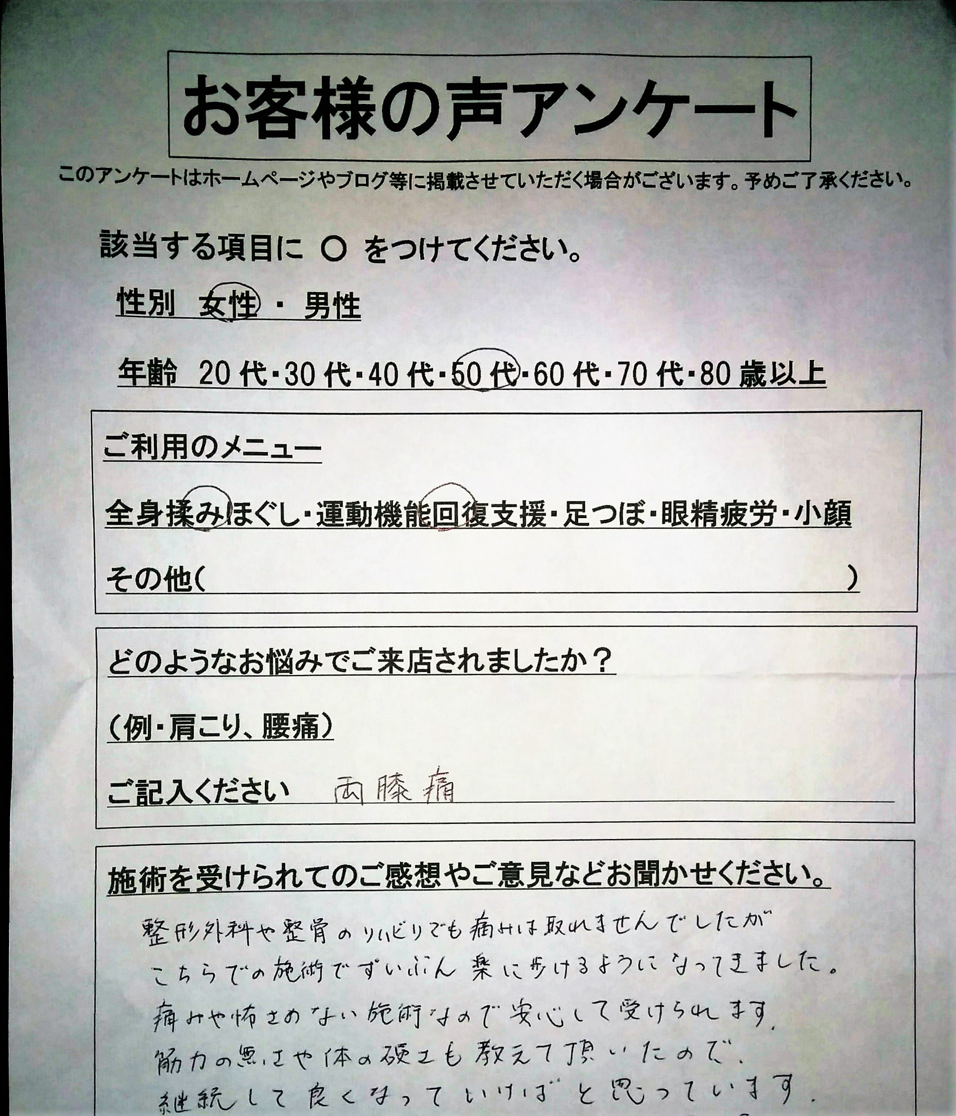 - 運動機能回復支援は、歳のせいと言われた関節の悩みを抱えている方やスポーツ障害の方に好評の整体メニューです。平成30年9月より、運動機能回復支援に通い放題コースを設定します。 -