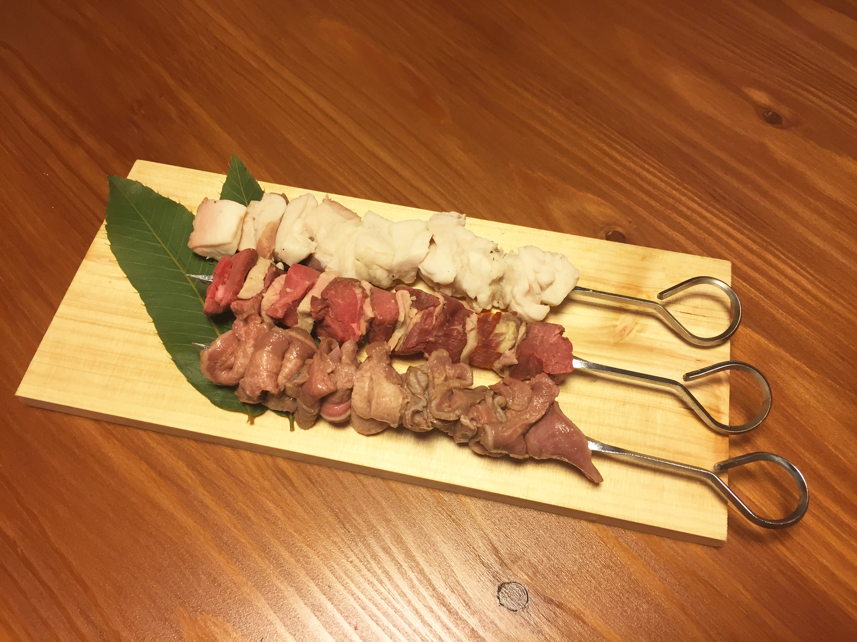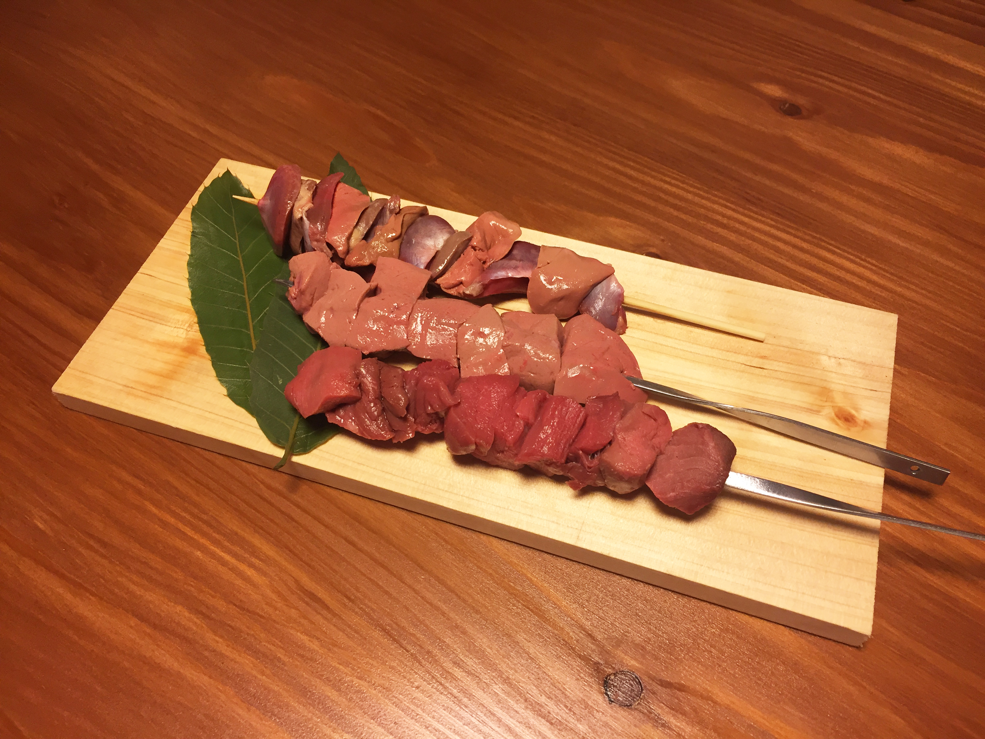 オススメは、「ジビエ串焼き(猪・鹿の赤身、猪の背脂、猪・鹿のレバー・ハツ、等)」(1本¥280~¥380)や、「猪の
