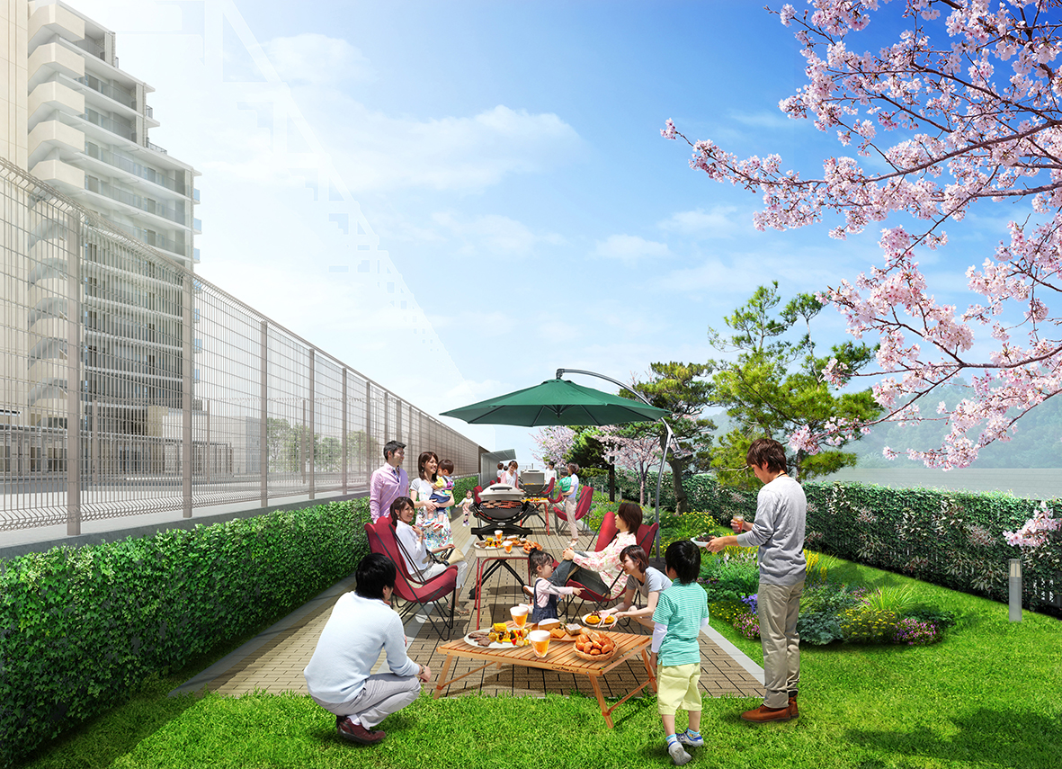 住まう236家族すべてに、心から幸せな暮らしを実感していただけるよう、広大な敷地内に様々な“こだわり”を取り揃えました。駐車場やサイクルポートを全戸分ご用意したのをはじめ、バーベキューテラスやコミュニティルームなど、日常を楽しく彩る共用施設も充実。住まう方対象のイベントも数多く開催するため、人と人とのあたたかなコミュニケーションを育みながら、自分らしい日常を過ごすことができます。