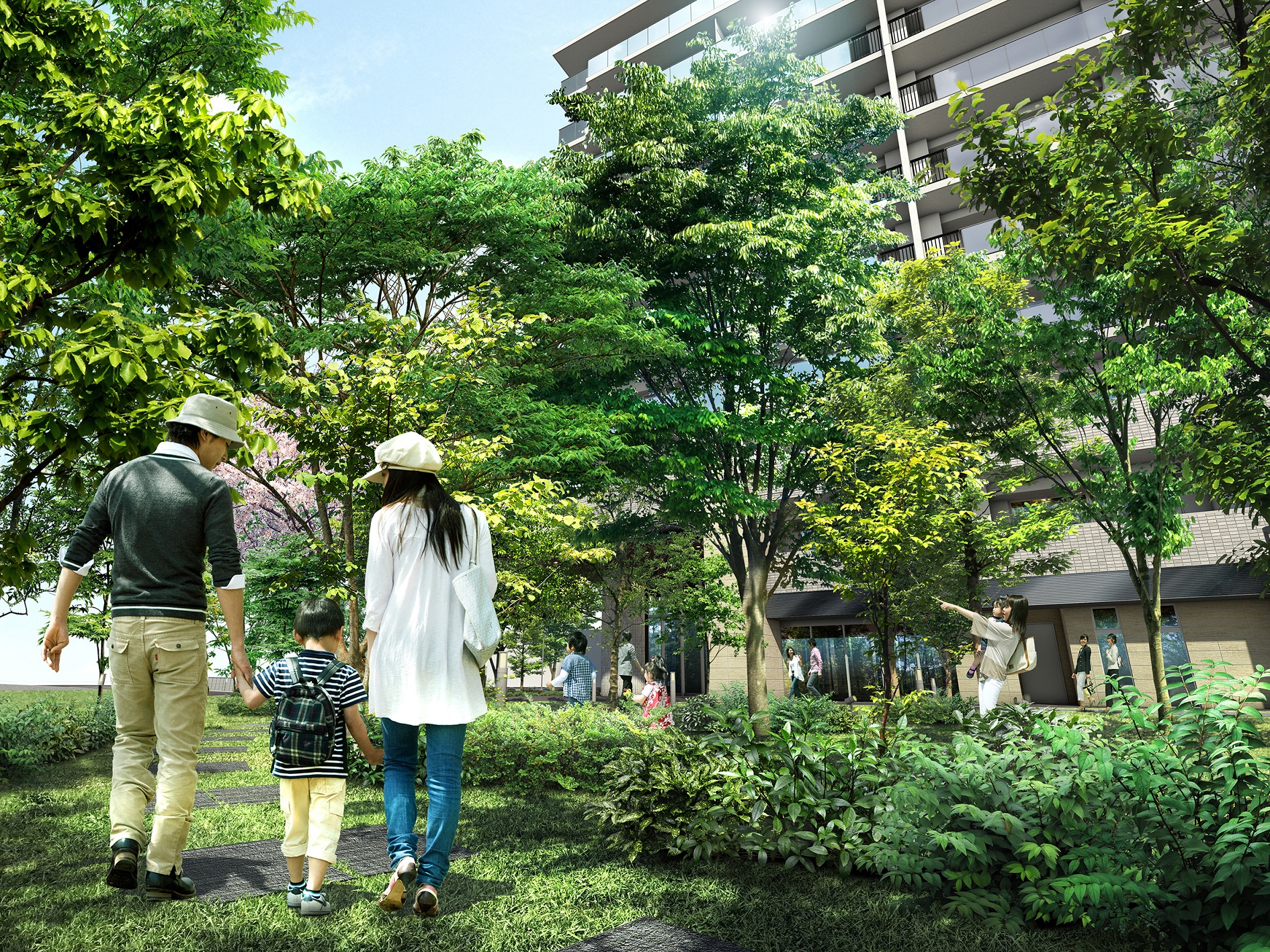 「ルネ西宮仁川」は、株式会社プレック研究所の監修を受けた「ABINC(エイビンク)」認証マンション。地域に根差した樹種の選定や緑地づくりを行うことで、数多くの生き物を敷地内へと呼び込みながら、豊かな環境を未来へと引き継いでいきます。さらに、自然とともに暮らすために様々な工夫も取り入れることで、子どもたちの感性を豊かに育み、大人の心も優しく癒していきます。