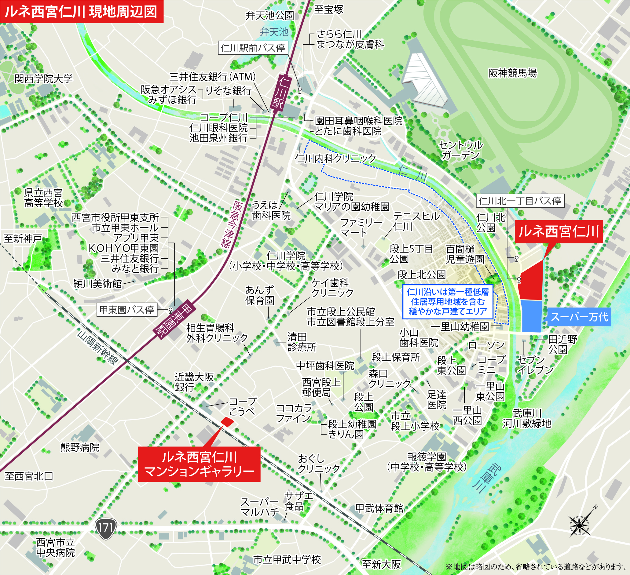 ◎阪急「西宮北口」駅へ3駅6分の阪急「仁川」駅までフラットアプローチ