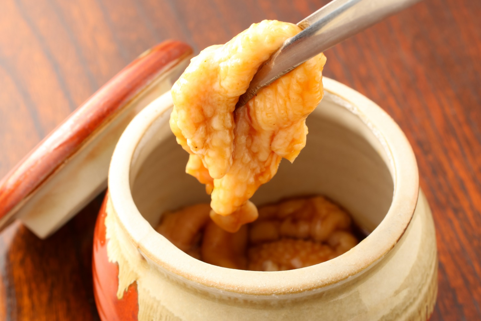 鶏焼肉の種類は20種。中でも、名物は「幻の鶏ホルモン」(580円)です。通常流通しにくい「薩摩知覧鶏」の胸からモモにかけての皮の部分を使っており、皮の内側には旨味がたっぷりのったおすすめの一品です。