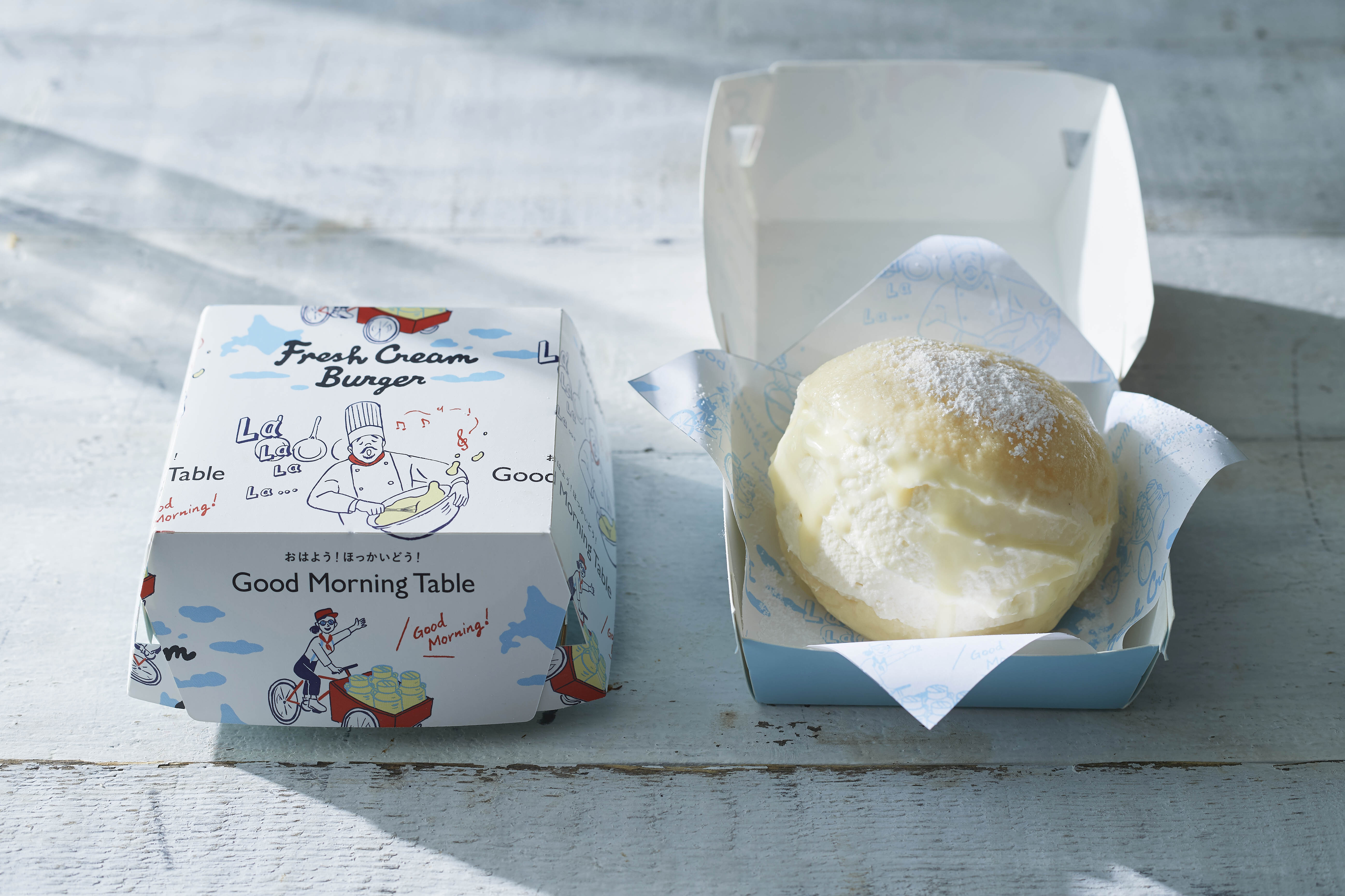 はじめまして!生クリームが主役のバーガーです。「北海道産の生クリームを、おいしく食べてほしい!」。そこで、私たちは生クリームをたっぷりはさんだ”バーガー”を考えました。北海道産生クリームには、隠し味にマスカルポーネチーズを加え十勝のジャージーミルクで作った、濃厚なミルクジャムをサンド。こだわったのは、生クリームとパンの出会い方。生クリームの口どけを邪魔しない、口どけのよい、しっとりなめらか食感のパン。ぜひ大きな口で、ガブリと召し上がれ。