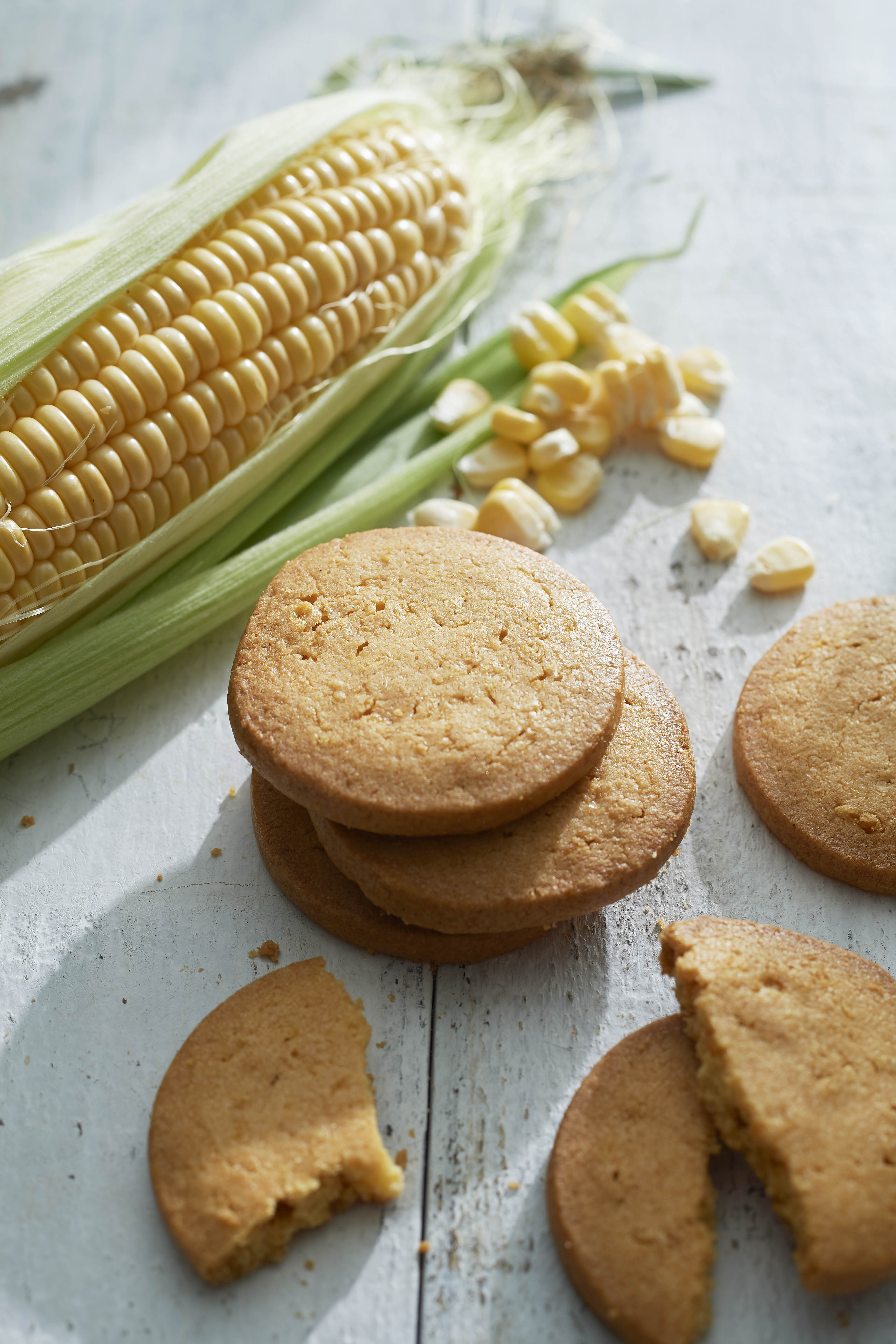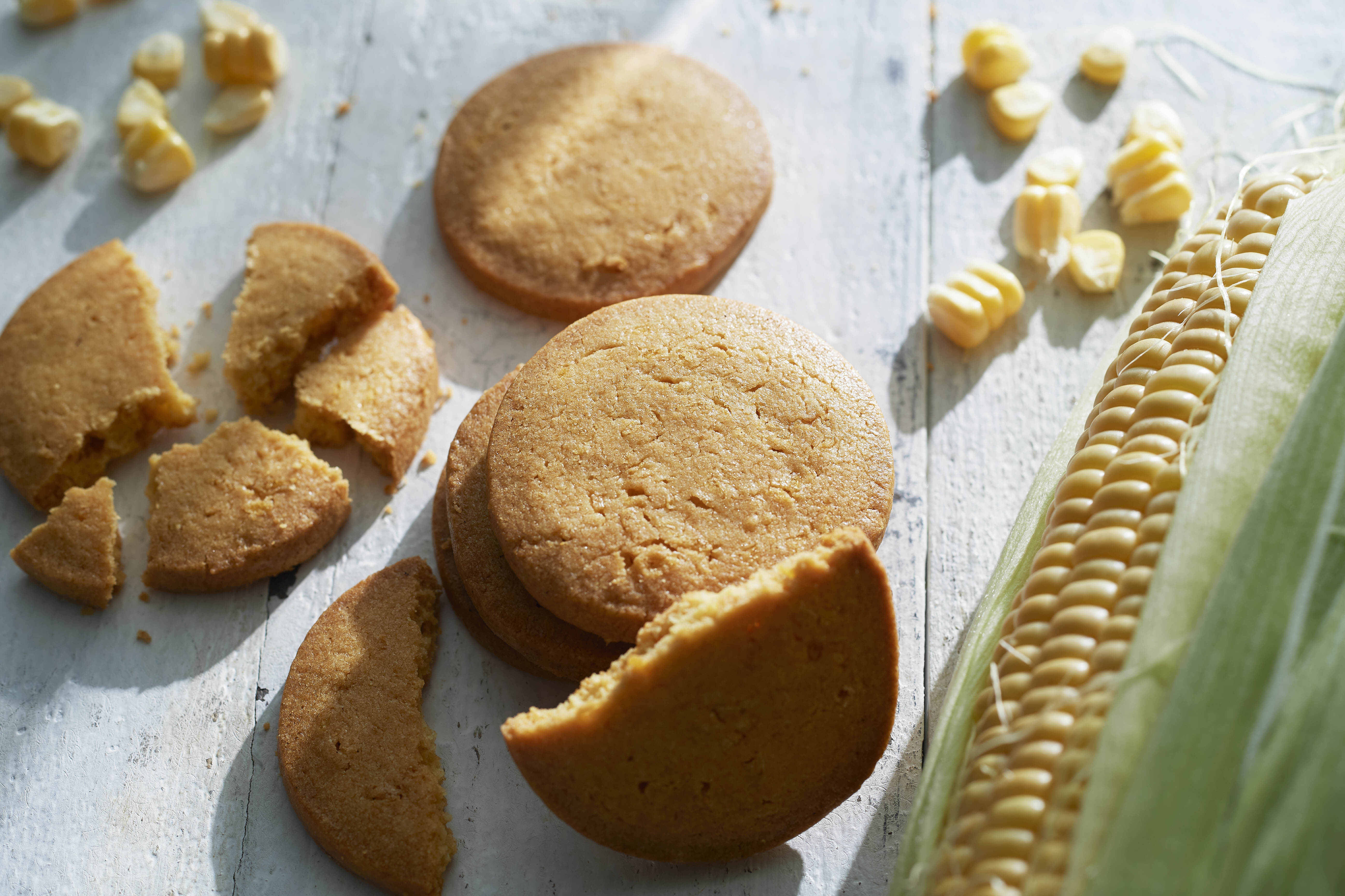 コーン本来の甘さを引き出すために、北海道産のコーンパウダーを使用しました。さらに、クッキーの中にはコーンフレークをいれて焼き上げることで、ザクザクとした、くせになる食感もプラス。