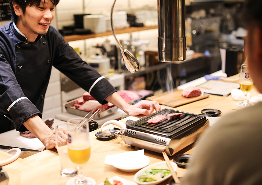 Yakiniku221で扱う肉の脂の質、新しい食べ方、異なる部位の味の違いを食べながら楽しめる焼肉コース料理をご用意しました。カウンター席で目の前で握られたできたての鮨を食べるような感覚で楽しむ焼肉。新感覚の贅沢な焼肉。焼肉好きの焼肉好きの為の新サービスです。