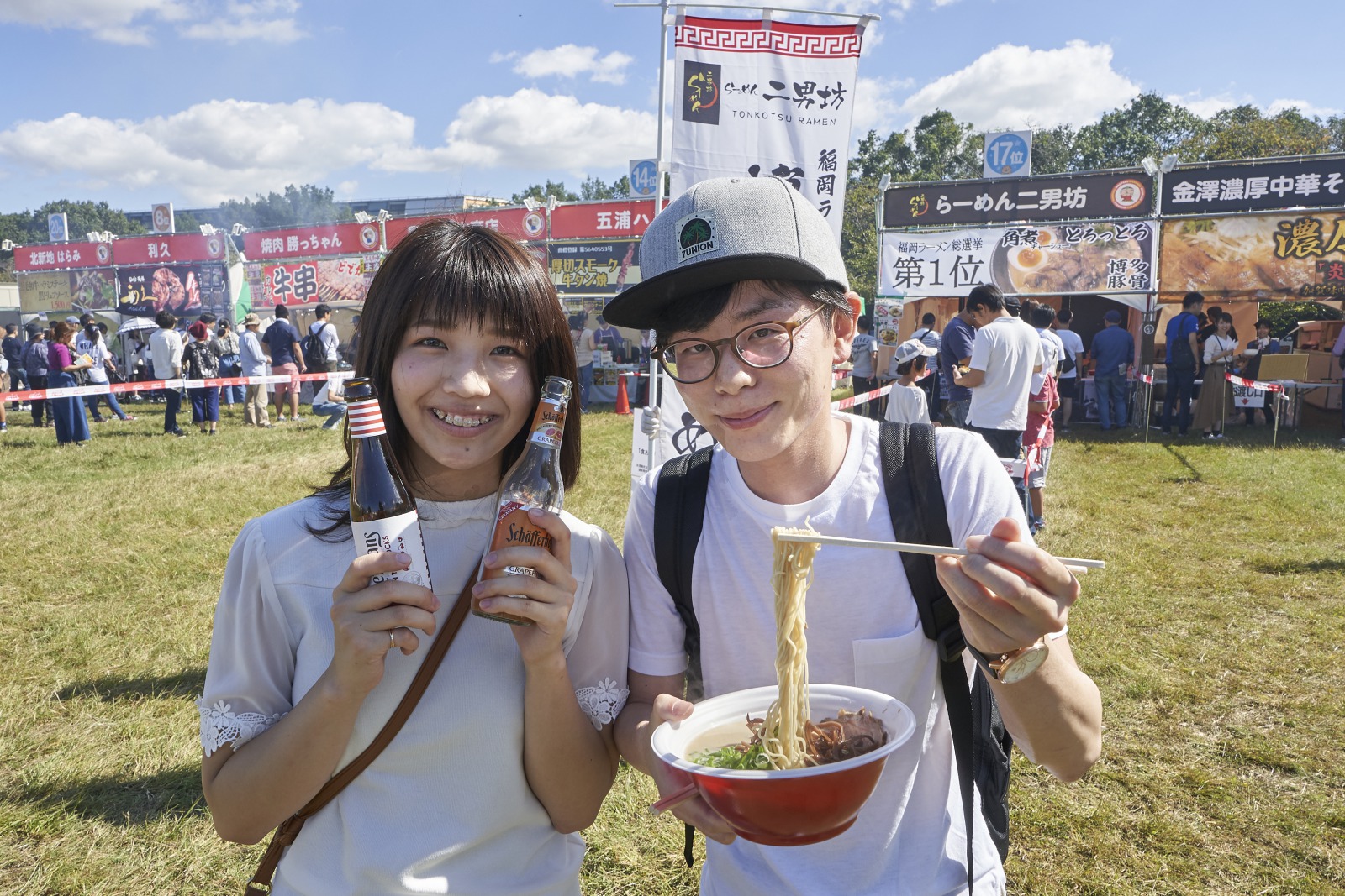 「まんパクin万博2018」の第1週目は晴天に恵まれ、計5万6千人の方にご来場いただきました。家族連れも多く、芝生の上でのびのびとグルメを楽しみながら家族団らんを過ごす姿が見られました。来場者の投票によって順位が決定する「人気グルメランキング」の第1位は「十勝牛とろ丼」(肉)、第2位は「くそオヤジ最後のひとふり」(ラーメン)、第3位は「王府井(ワンフーチン)」(餃子)となりました。残り6日間もさらに盛り上がるよう期待しております。