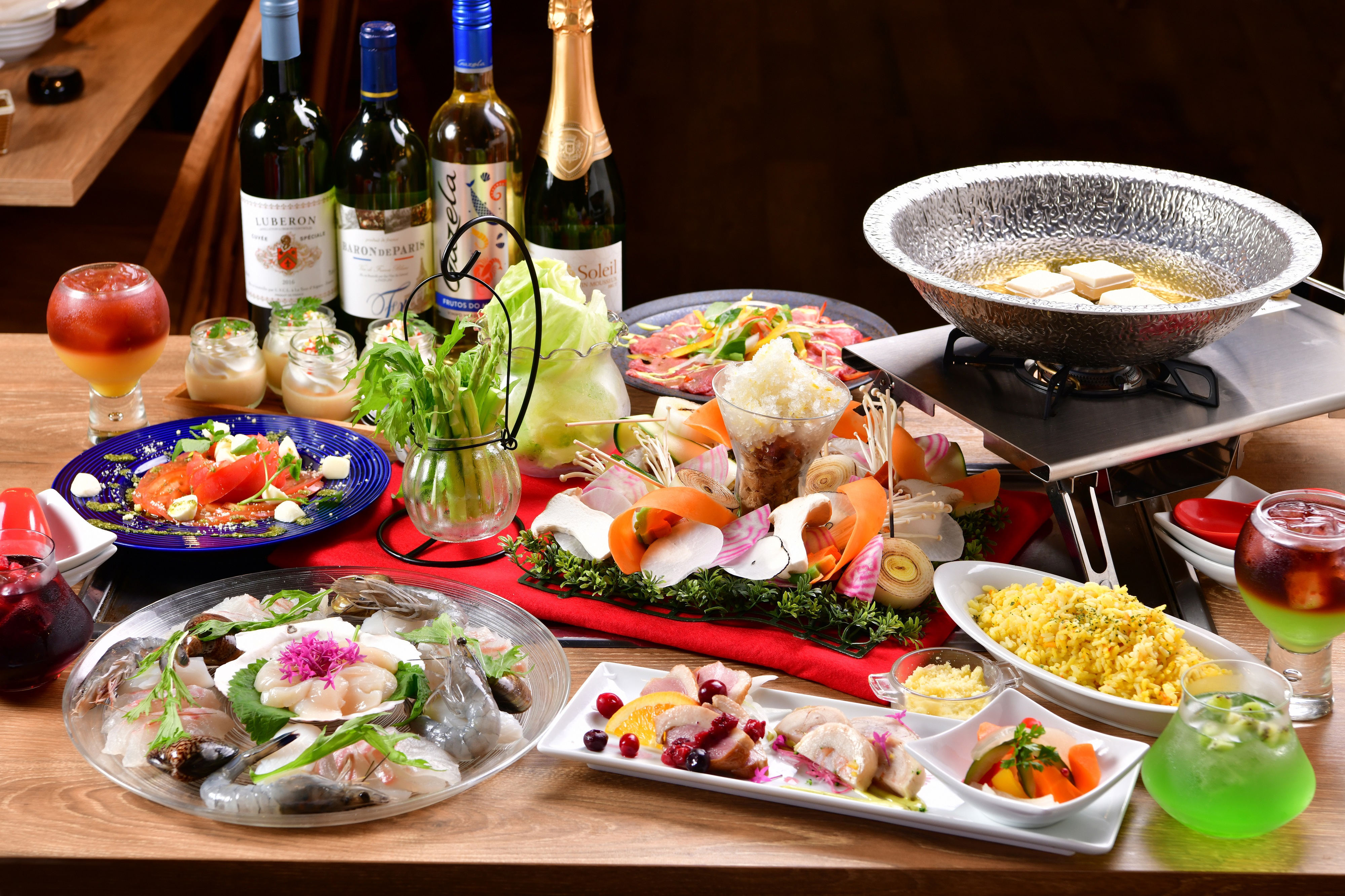 価 格:お一人様 税込5,500円(コース料理、飲み放題付き)※3人~ご注文可