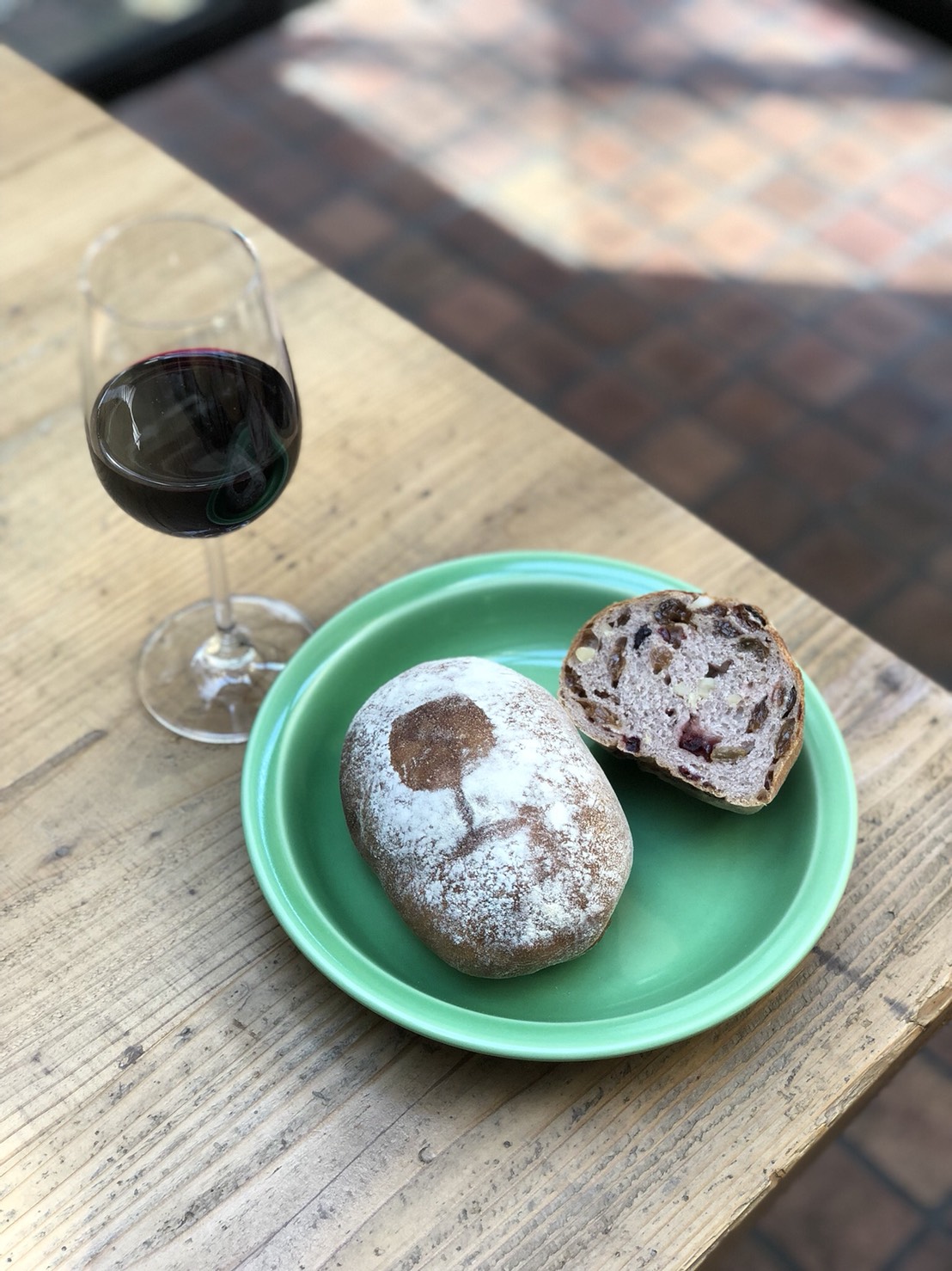 赤ワイン仕込の生地にカシューナッツ、サルタナレーズン、クランベリーがたっぷり入った贅沢なパンです。