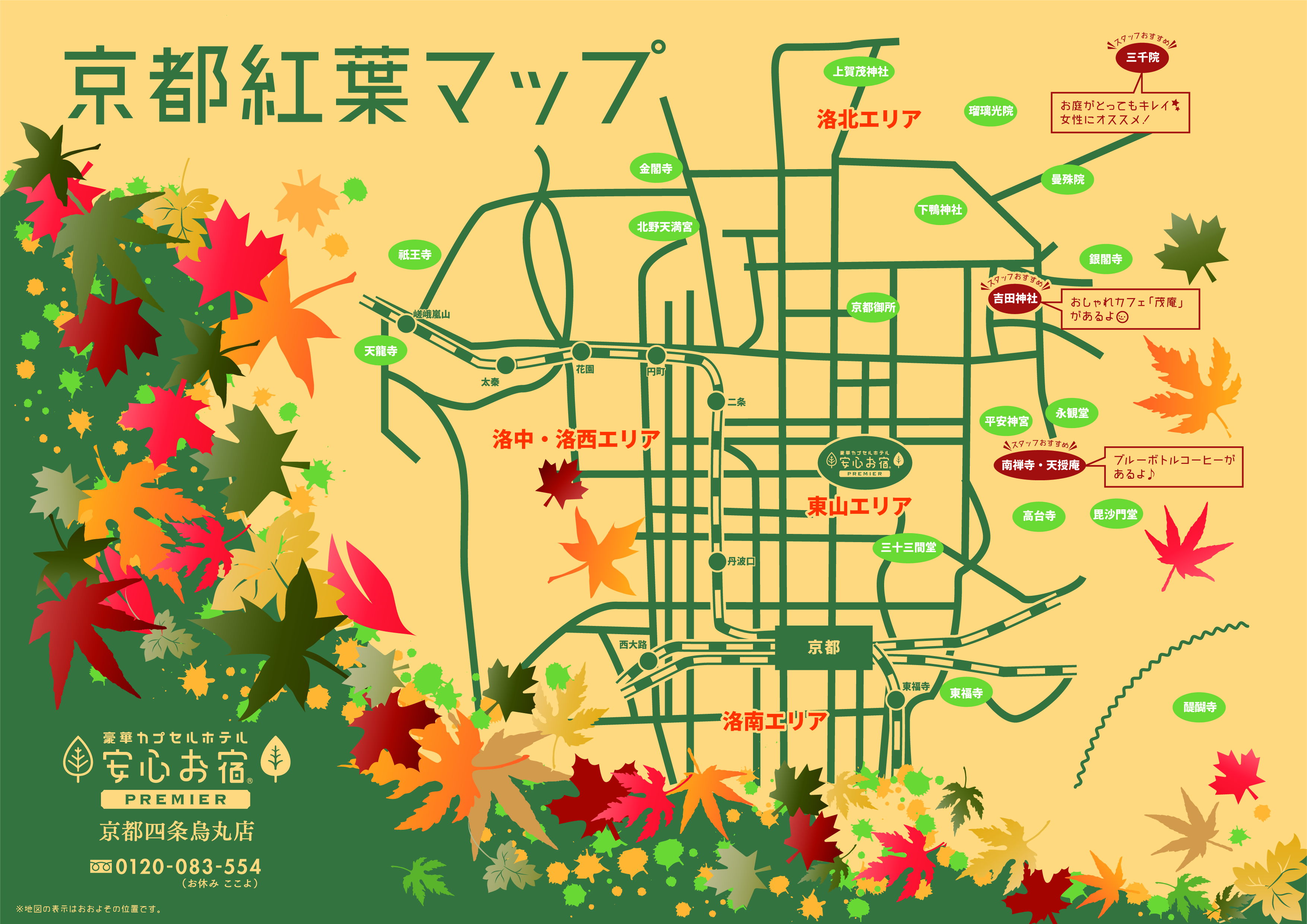安心お宿 京都四条烏丸店から行きやすいエリアの紅葉スポットをご紹介しています。