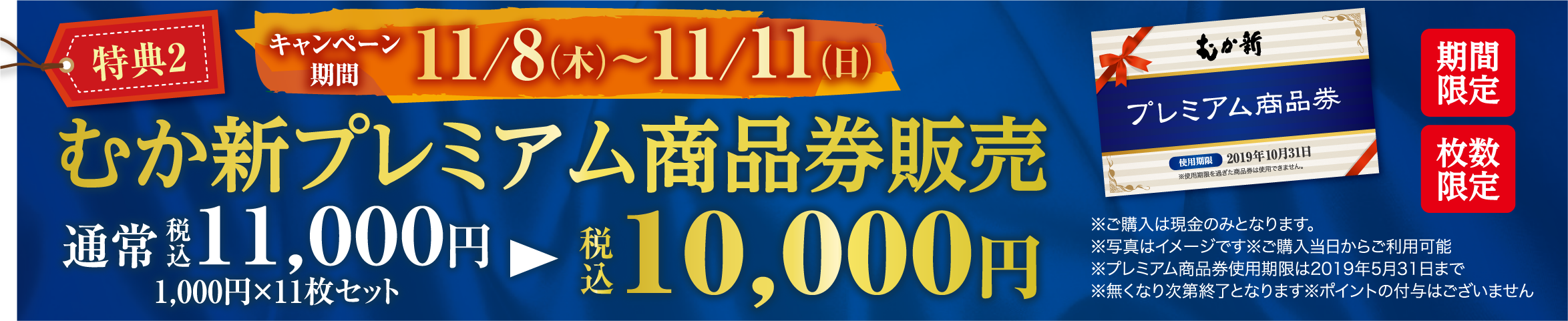 4日間限定で「むか新 プレミアム商品券」を販売いたします。