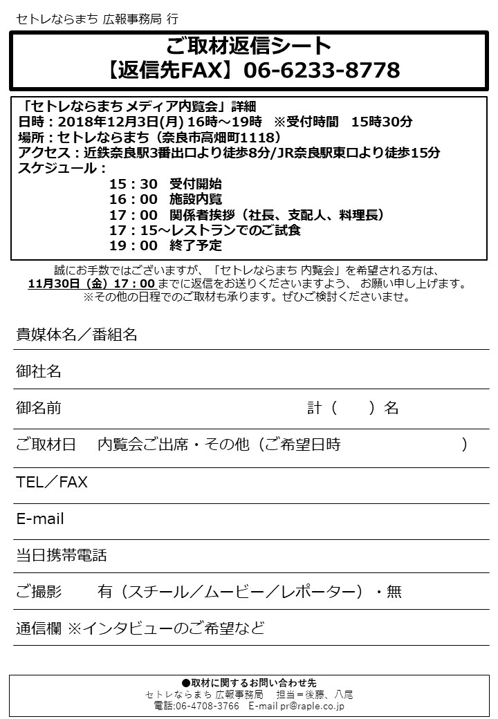 内覧会のご案内については下記画像「ご取材返信シート」をご確認下さいませ。