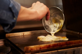 材料はイカと小麦粉ベースの生地、そして卵だけ。 この3つを鉄板でギュッと挟んで焼く“たこ焼き”“お好み焼き”に並ぶ「OSAKA SOULフード」粉もん。
