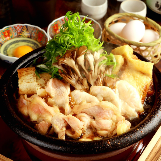 メインの「すき焼き」は、すりおろしりんごを隠し味に入れた濃厚な割下が特徴です。ほのかな果実の酸味と香りがコクを引き出し、さっぱりとした味わいです。GEMSなんば店では京都店にはない新メニューとして、「牛タンすき焼き」や「牛ホルモンすき焼き」のほか、「幻のアグー」と呼ばれる沖縄県産の紅アグー豚を使った「豚すき」、ハーブをブレンドした飼料で育てた鳥取県産の美味鶏の「鶏すき」など多彩なすき焼きを展開いたします。さらに定番の生卵だけでなく、特製の「とろろ芋だし」もご用意いたしております。