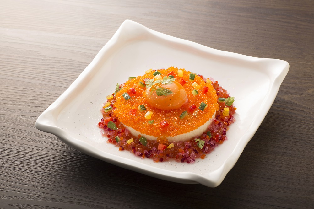 当店の自慢はすき焼きだけではございません。炭火でじっくり焼き上げたお肉を串に突き刺した「牛ステーキ大串」や「紅アグーの豚大串」、「美味鶏大串」といった大串シリーズも、一口食べたらヤミツキになる味で京都店で人気の一品です。そのほか、「鯛の九条葱カルパッチョ」「イカとんび(ほほ肉)の唐揚げ」「黒枝豆のペペロンチーノ」「紅アグー豚の西京漬け焼き」などひとひねりあるアラカルトメニューをそろえます。「GEMSなんば」のオープンを記念し、「GEMS=宝石」を意識したメニュー「北斗の宝石豆腐」(税抜690円)も開発いたしました。お豆腐を宝石に見立てて煌びやかな食材をちりばめて作った、見た目も美しいメニューです。ドリンクは、すき焼きに合わせた日本酒を多数用意するほか、当店のすき焼きの隠し味「りんごのすりおろし」にちなみ、りんごを使ったドリンクメニューも展開いたします。
