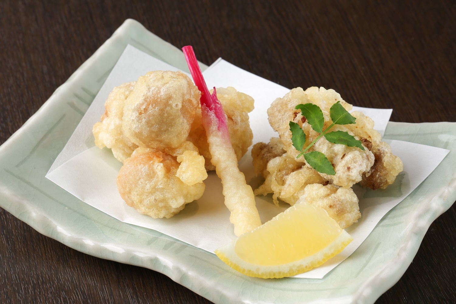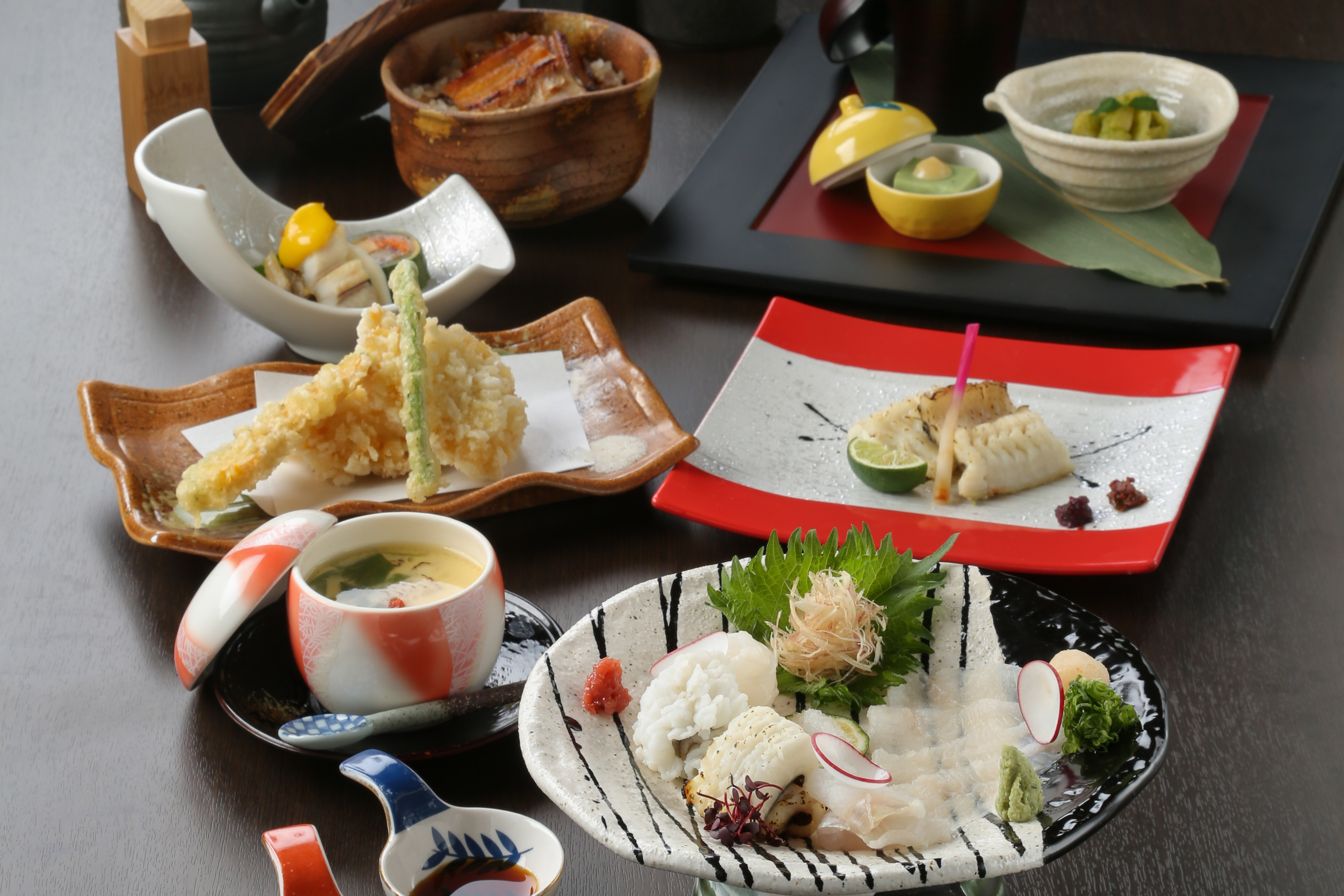 穴子を使って調理したメニューは全28種。そのほか、「穴子の蒲焼き」(1,380円)、「穴子の白焼き」(1,380円)などのほか、「燻製穴子と季節野菜のアヒージョ」(1,050円)「穴子の骨せんべい」(580円)などといった変わり種もご用意しております。前菜から御飯まで全て穴子料理で構成したコース料理「楓」(4,000円)「蘭」(5,500円)「牡丹」(7,000円)「富士」(9,000円)では、「穴子と季節野菜の天ぷら」や「穴子の出汁しゃぶしゃぶ」などをお楽しみいただけます。