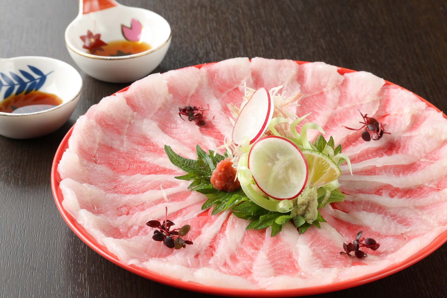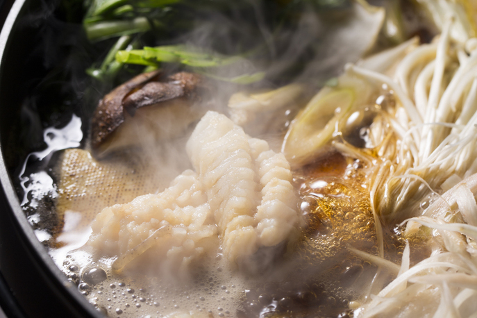 淡路島の穴子は波が穏やかな瀬戸内海に生息しており、山の土が川から海へ流れる三角州によって、穴子の餌となる藻や泥が豊富であることから、昔から京都の料亭などで提供されるブランド魚として親しまれてきました。その中でも身が大きいものが「伝助穴子」と呼ばれております。脂が大変良くのっており、薄造りにしたときでもしっかりとした味わいが特徴です。看板メニューの「穴子の薄造り」(2,500円)は、「一度食べれば穴子の世界観が変わる」と自負している、当ブランド人気メニューの一つです。