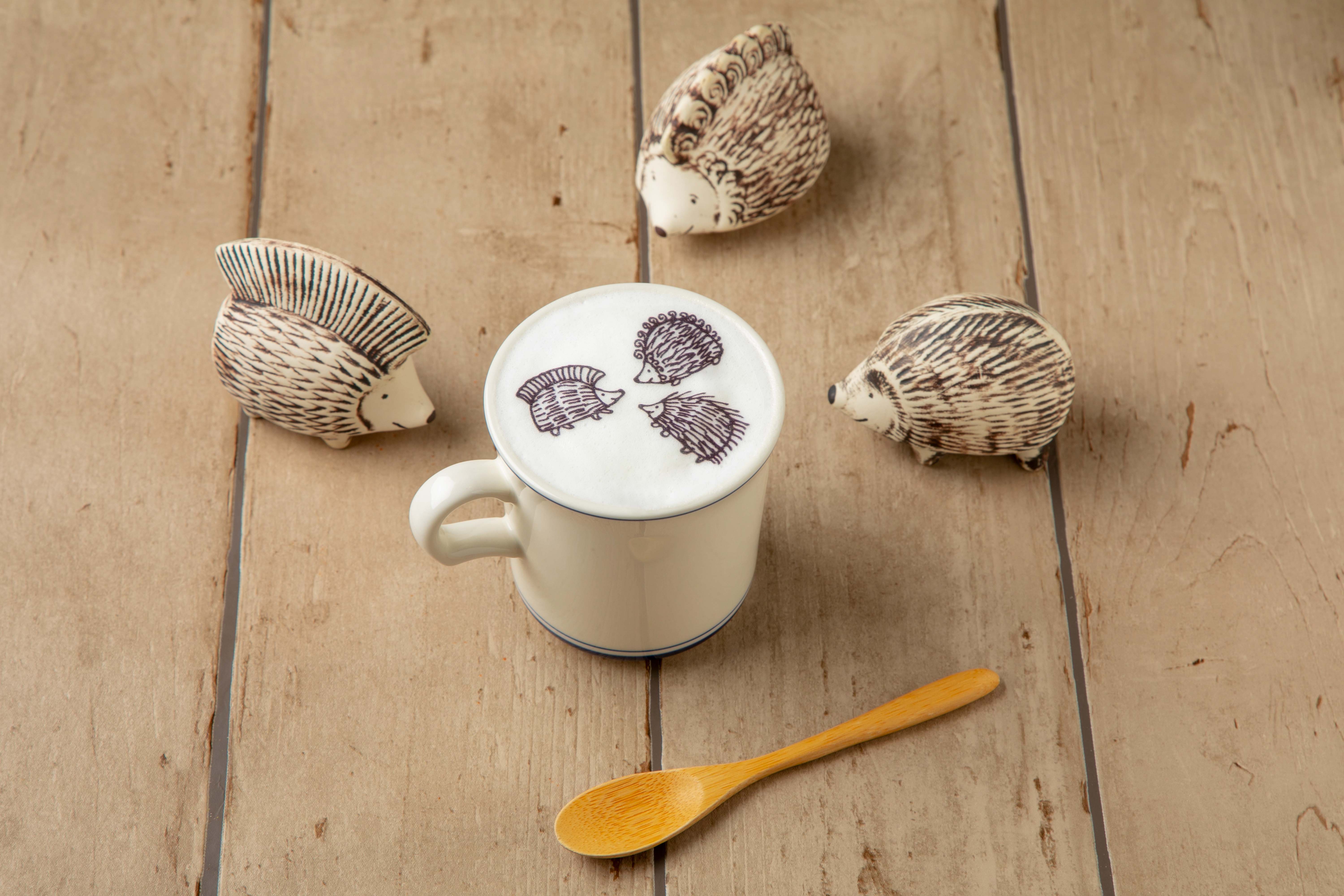 ハリネズミ3兄弟、イギー・ピギー・パンキーが勢ぞろい。あたたかいキャラメルラテでフィーカタイム。