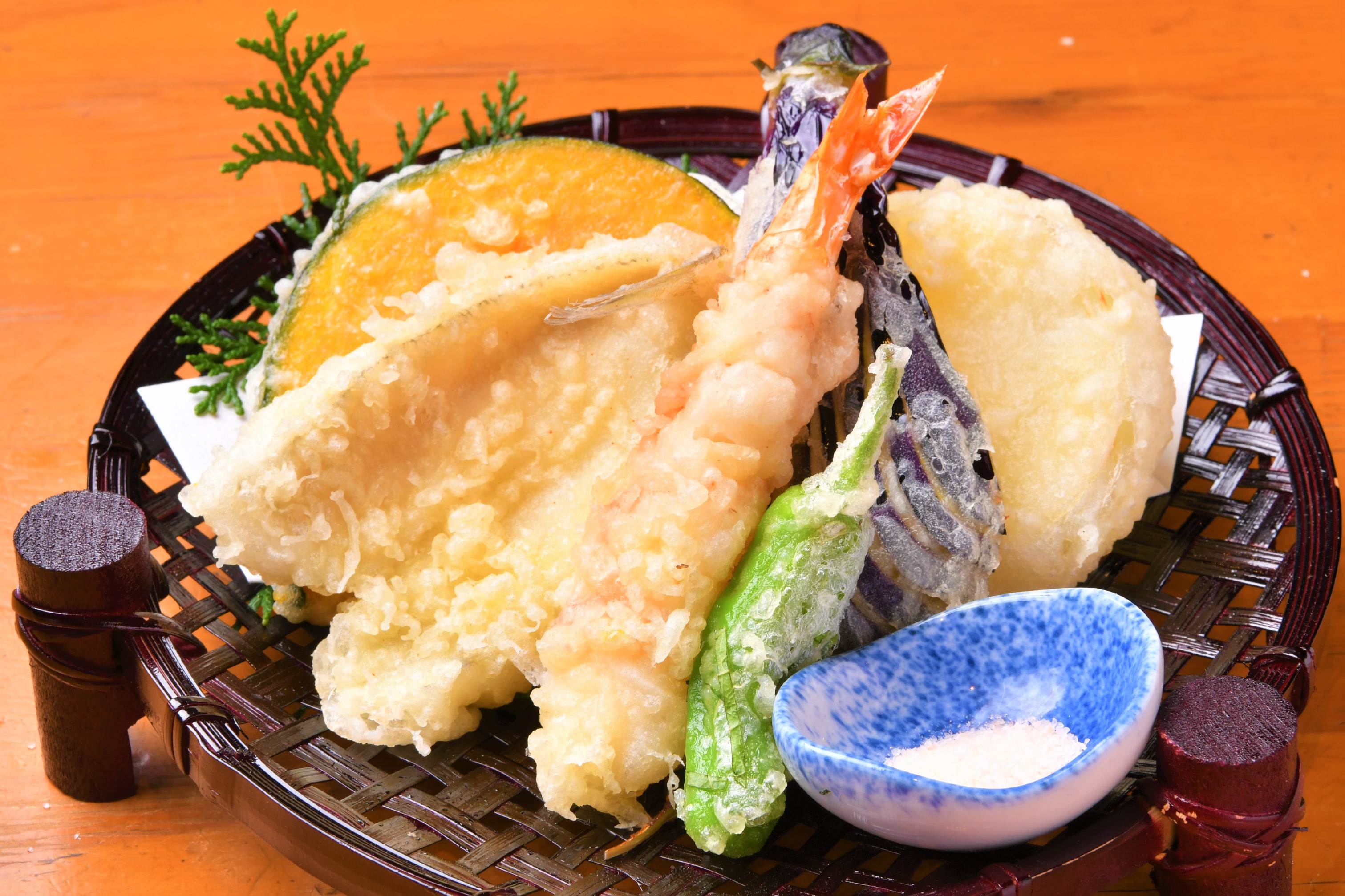 そのほか、「天ぷら5種盛り合わせ」(780円~)や「鯛かま焼き」(780円)などの料理も約40種類用意。天ぷらは、軽く・香ばしく仕上げるため、当店オリジナルブレンドのごま油で揚げております。デザートは、さっぱりとした手作りの「梅酒シャーベット」(280円)を用意しました。