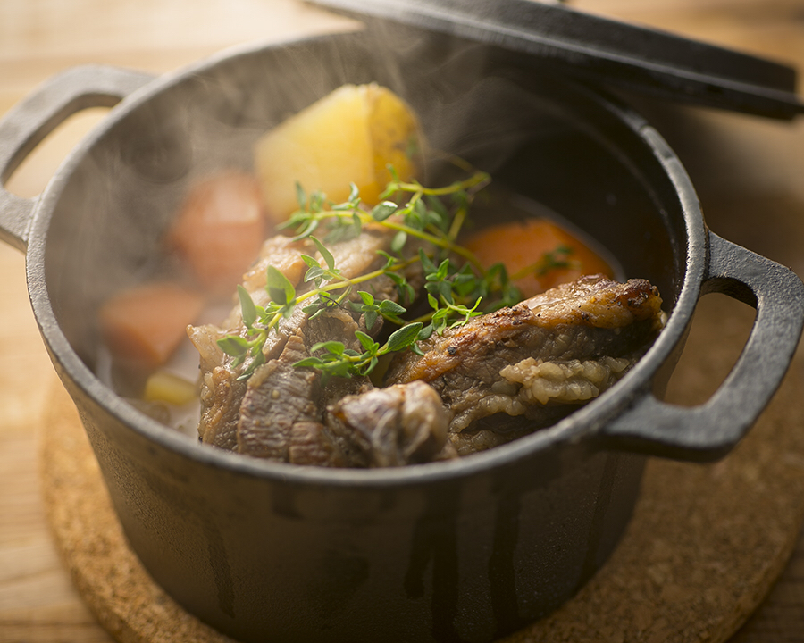 アウトドア料理の定番といえば「ダッチオーブン」を使った煮込み料理。VAMOS では、お肉や野菜を丸ごと煮込んだ十数種類のメニューを用意しています。鉄製の鍋ごと出てくるので、迫力感もたっぷり。SNS 映えすることも間違いなしです。ダッチオーブン料理を食べながら、登山やキャンプ気分を味わえます。