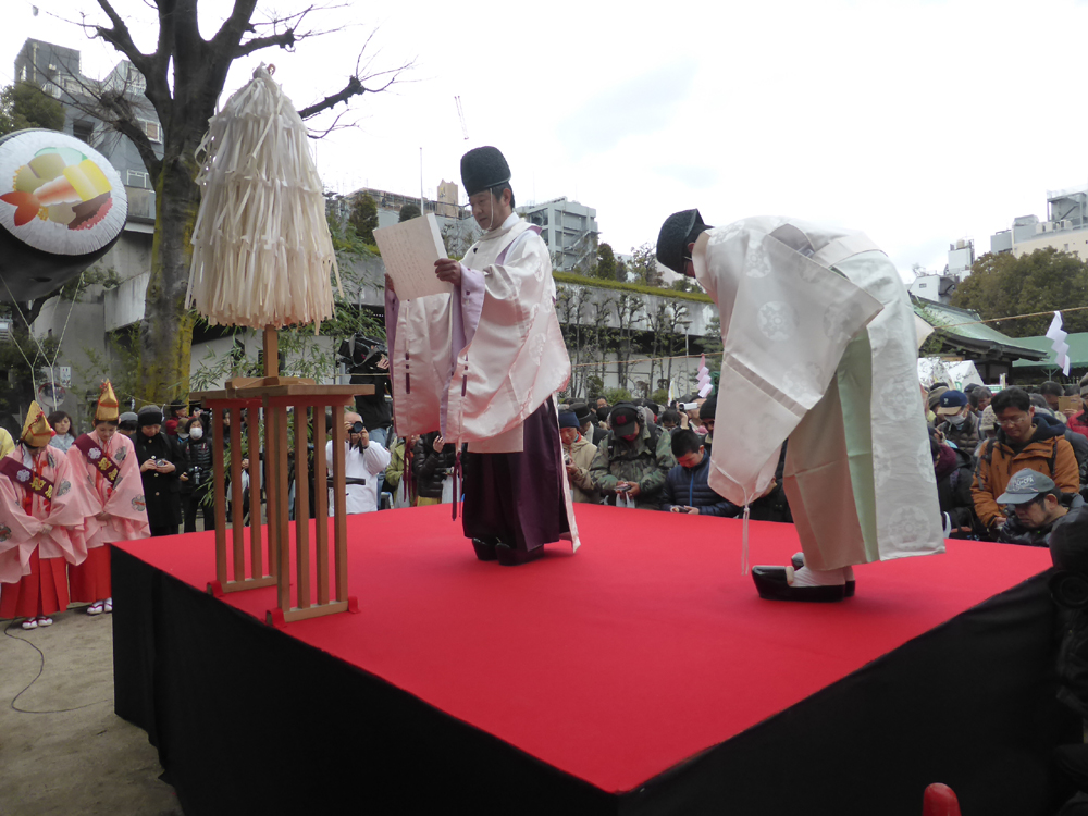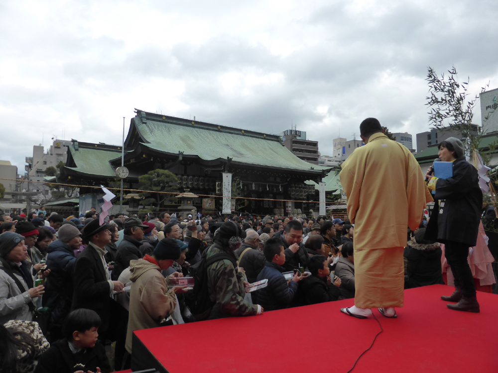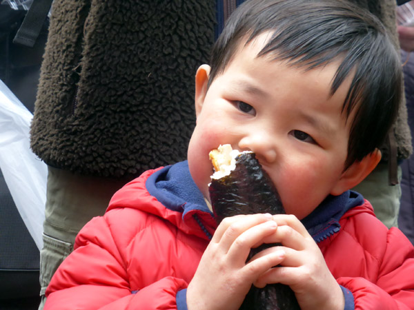 無料で先着1,000人に巻き寿司を配布。1,000人が揃って恵方を向き、