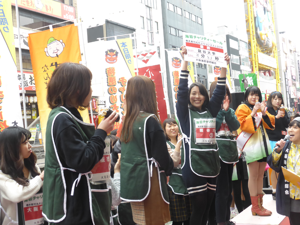 巻き寿司丸かぶりをおこない、タイムを競う催しです。