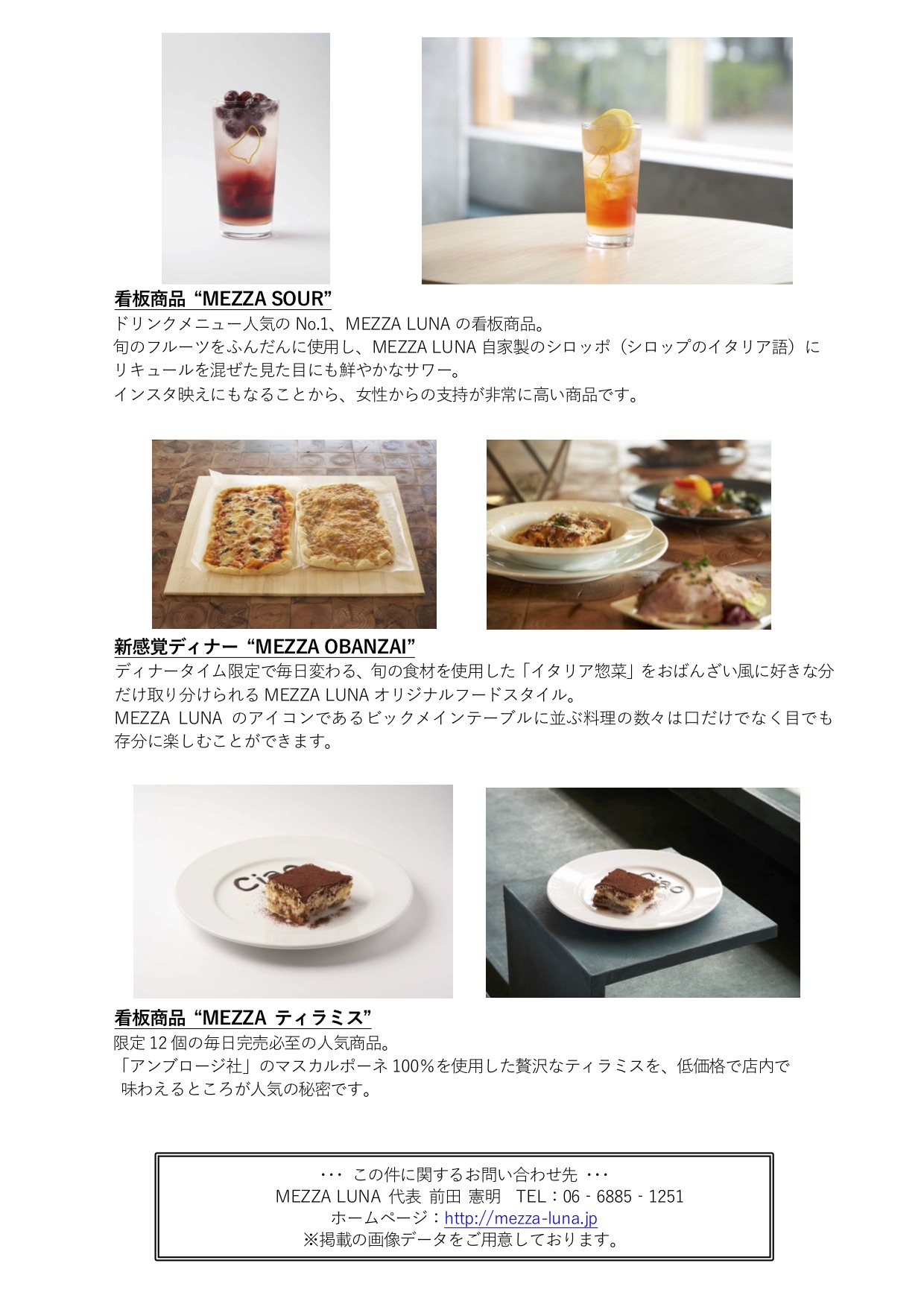 お店の名前は「MEZZA LUNA 〜メッツァルナ〜 (イタリア語で’半月’の意)」といいます。「トラットリア ルナピエナ(イタリア語で’満月’の意)」がイタリアンレストランであるのに対し、「MEZZA LUNA」は料理のクオリティはそのままに、ドリンクをメインにした「もっと手軽に普段づかいできる(満月よりもライトな半月)」イタリアンカフェ&バルです。