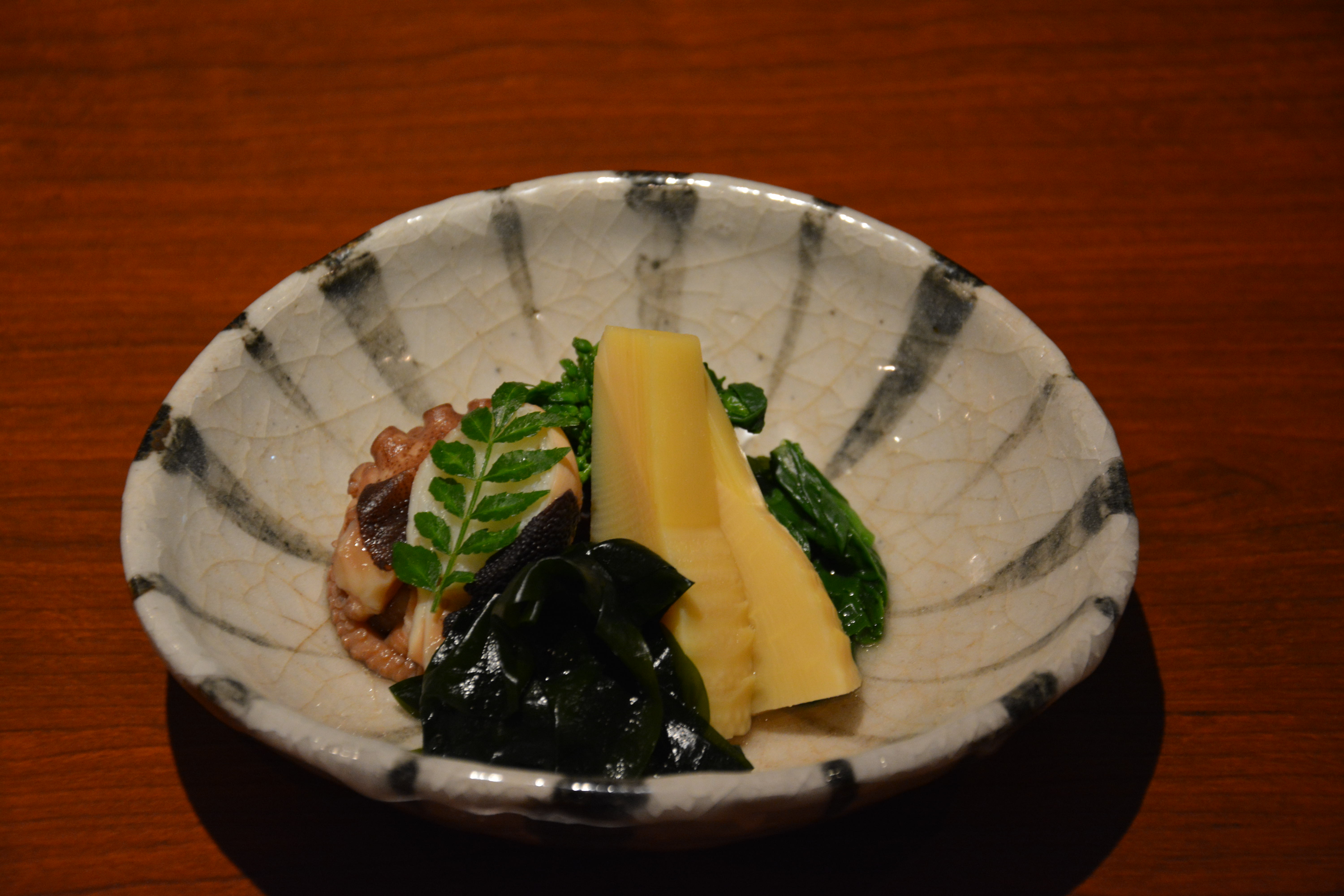 食材の持ち味を第一義とするが、同時にそれを選ぶ眼力を養わねばならない。そして第一等でない素材でも、化学調味料は用いず、出汁の力、もしくは数種を合わせることによって互いの長所を取り入れ短所を補う「採長補短」を以って、最良の味を創ることが肝要である。