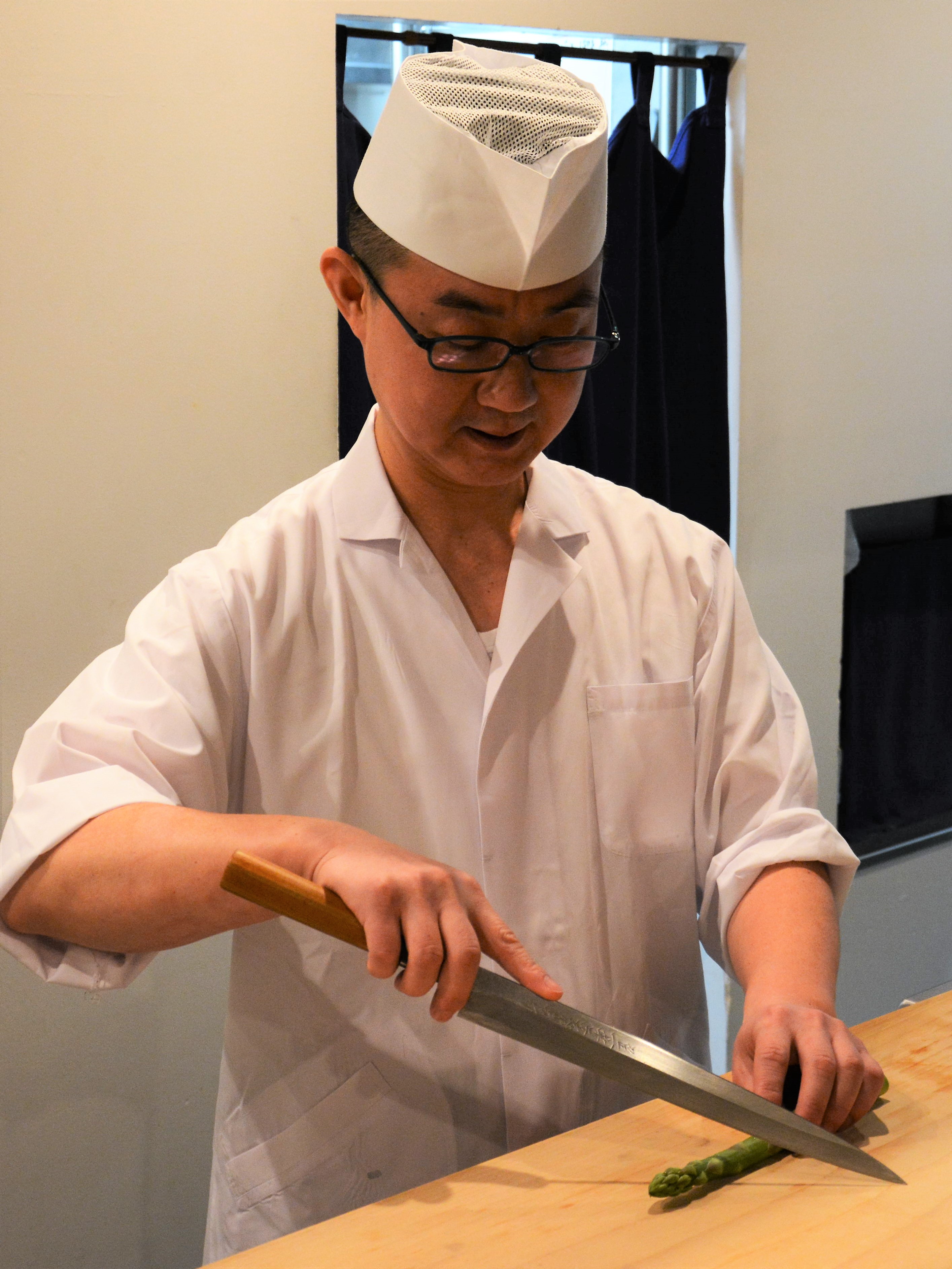 愛媛県出身。辻調理師専門学校卒業後、”大阪料理”の老舗として知られる日本料理店「浅井東迎(アサイトウゲイ)」で20年間修業し、店長まで勤め上げる。豊富な経験と知識を活かした、素材の良さを惹きたてた料理を得意とする。