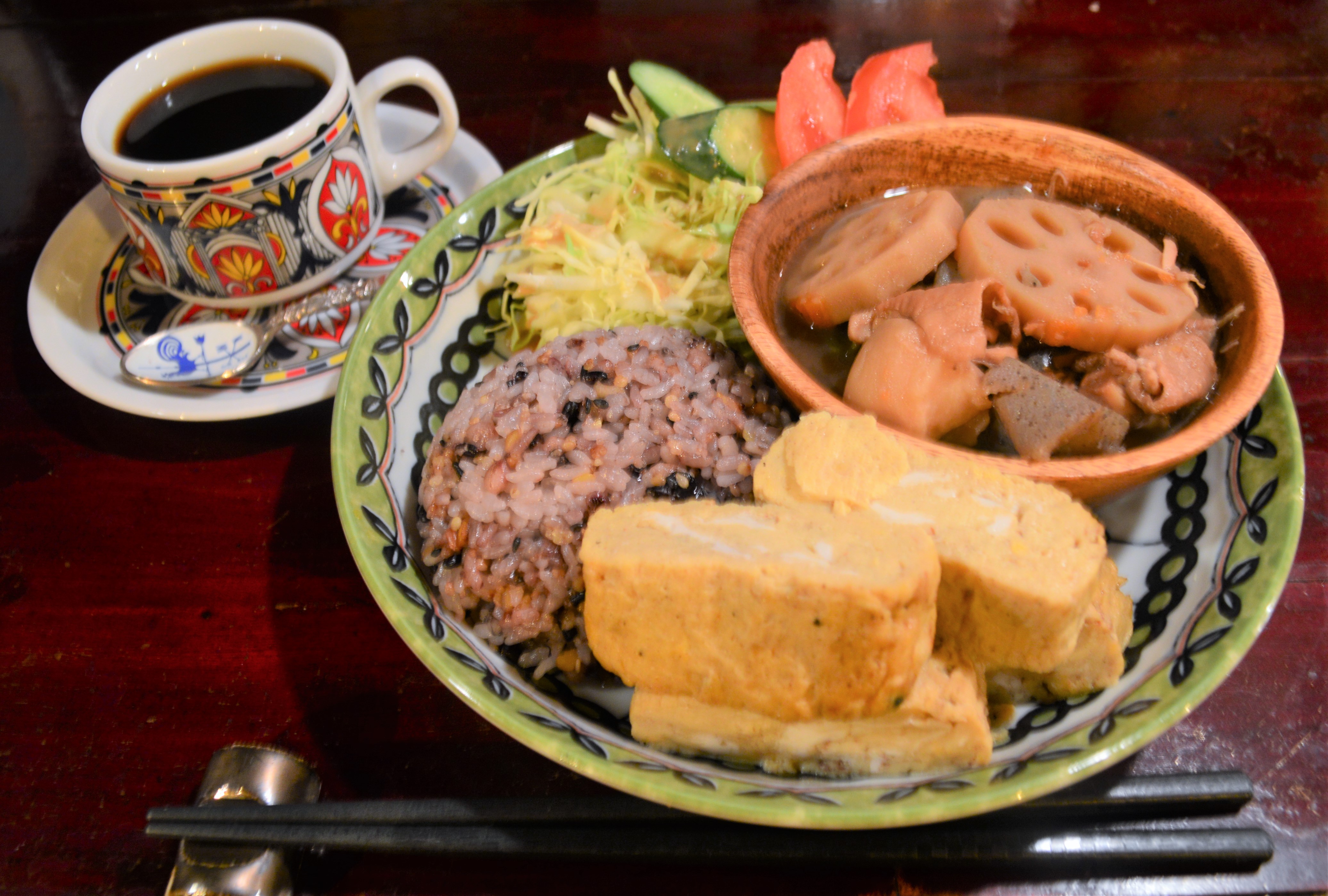メニュー:「和」=五穀米・出汁巻き・筑前煮・サラダ